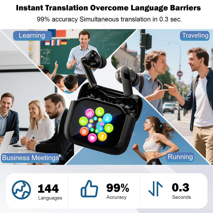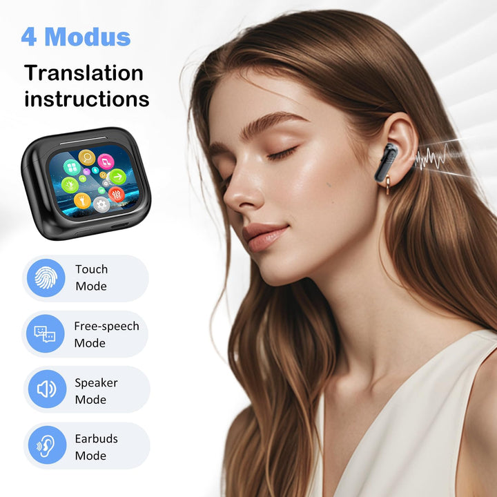 - 3-in-1-Funktionalität: Das Headset bietet nicht nur eine perfekte Übersetzung, die Sprachbarrieren überwindet, sondern fungiert auch als Mediaplayer, um Ihre Lieblingsmusik abzuspielen, und ist ausserdem ein zuverlässiges Gerät zum Telefonieren -
