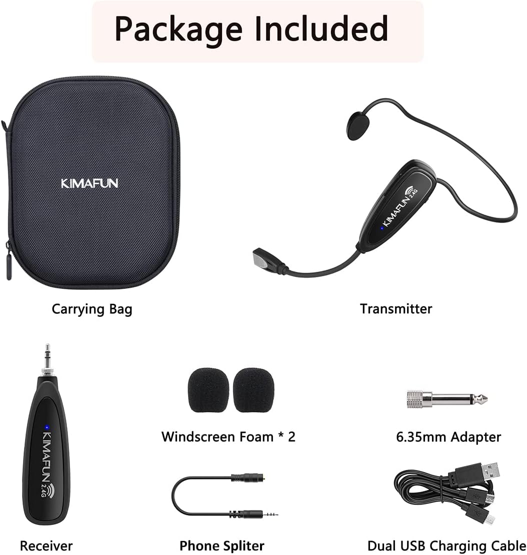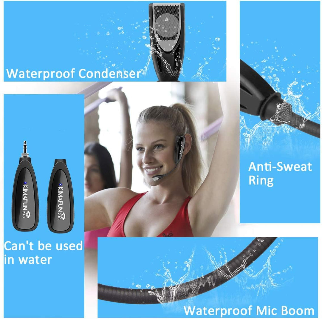 - 【2 IN 1】 Das Fitnessmikrofon kann auf zwei Arten verwendet werden: 1, als allgemeines Headset-Mikrofon. 2, es wird ein Handmikrofon, wenn die Kopfhalterung entfernt wird. Der Funksender ist an der Kopfhalterung befestigt und hilft Ihnen, Kabelfesseln