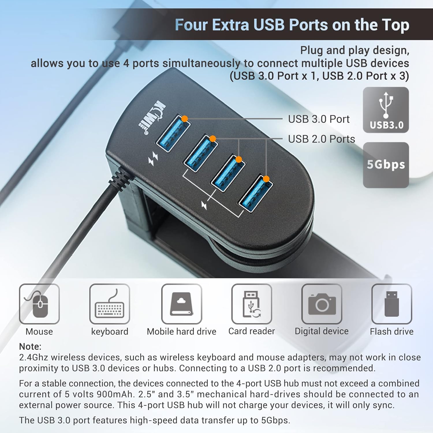 - USB-3.0/2.0-Anschlüsse und rutschfeste Gummi-Pads und Kabelclip-Design: Ausgestattet mit 1 x USB 3.0 + 3 x USB 2.0-Anschlüssen auf der Oberseite, sodass Sie mehrere USB-Geräte anschliessen und eine Hochgeschwindigkeits-Datenübertragung geniessen