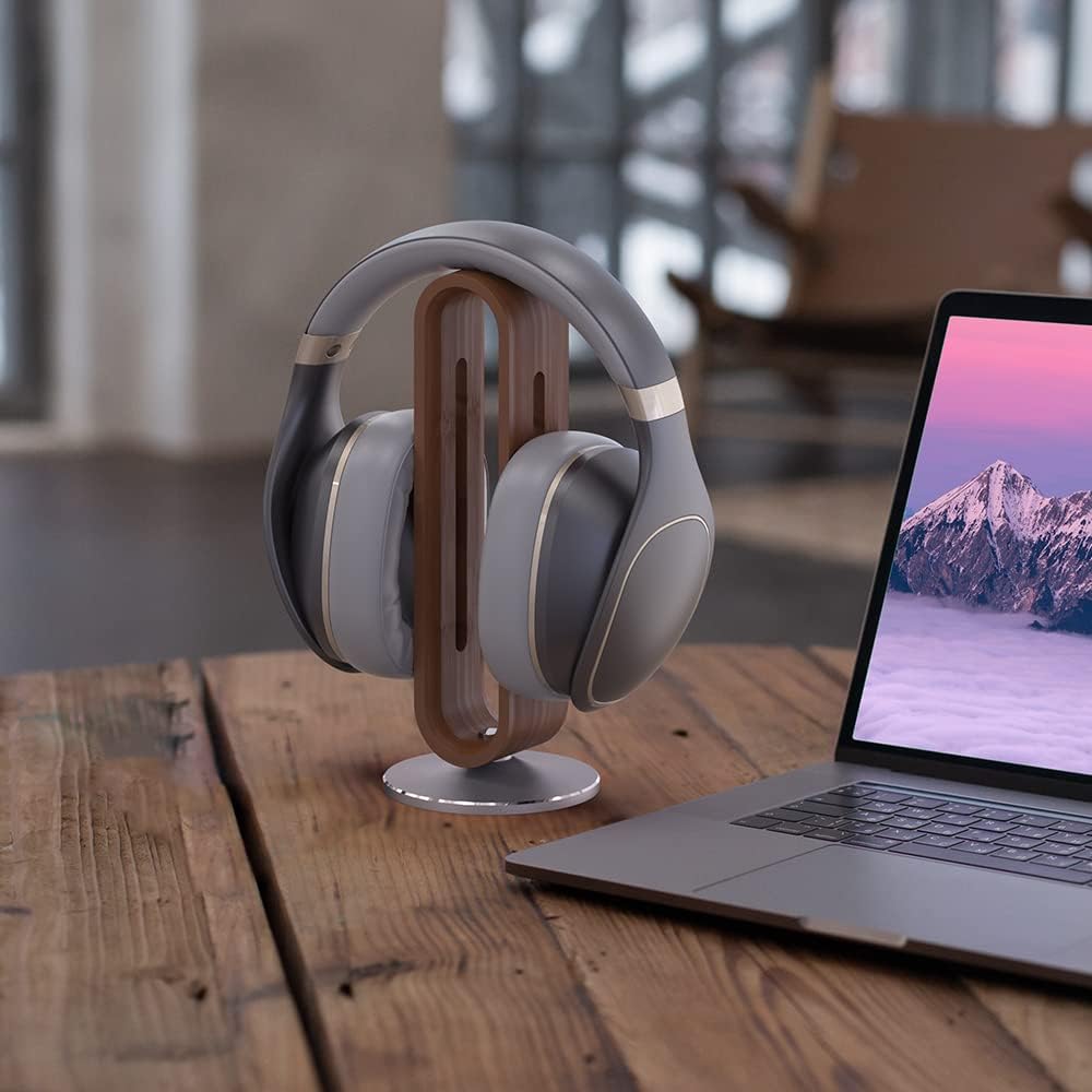 - Stabile Kopfhörerhalterung: Der Holzständer ist robust und hat Gummifüsse auf der Basis aus Aluminiumlegierung, um ein Verrutschen auf glatten Oberflächen zu verhindern.