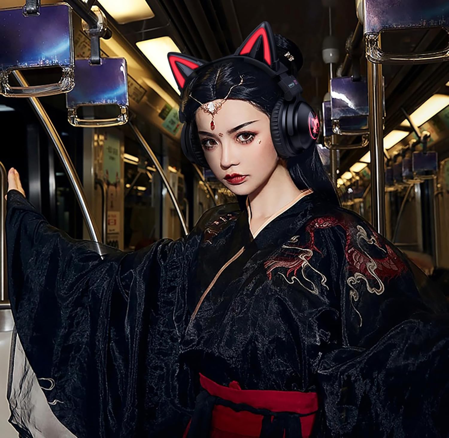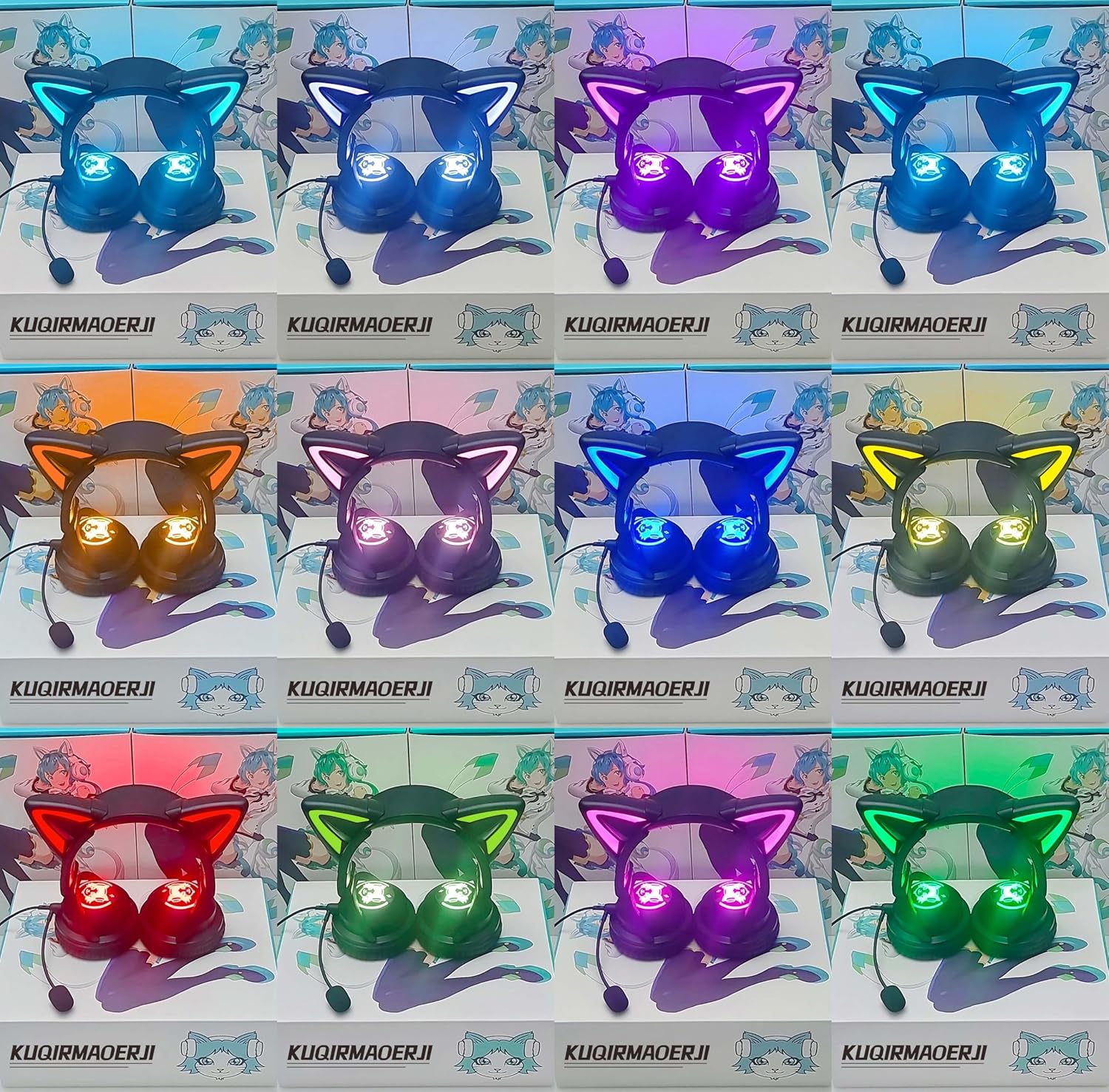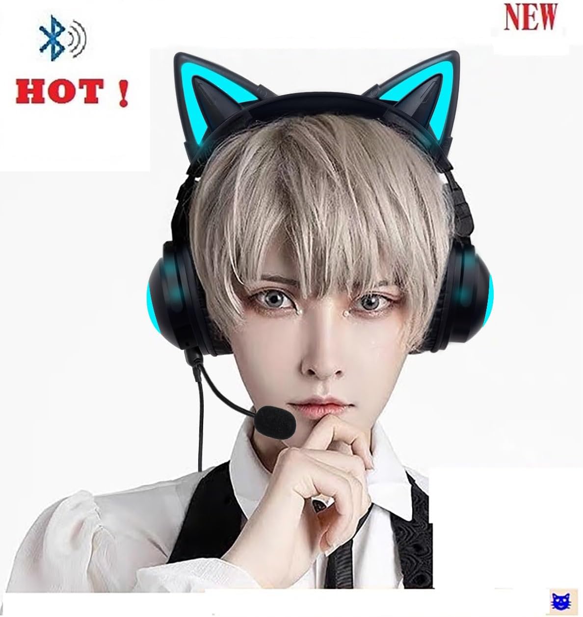 - 💚【Lichtfarbe, Blinkmodus】 Kabelloser Premium-Cat-Ear-Kopfhörer für privates Hören, unabhängig gesteuerte Farbwechsel-Scheinwerfer, Farben: Pink/Lila/Grün/Rot/Glasiertes Blau/Dunkelblau/Gelb/Kühles Blau/Nebelblau/Orange/Sakura Pink/Spirit