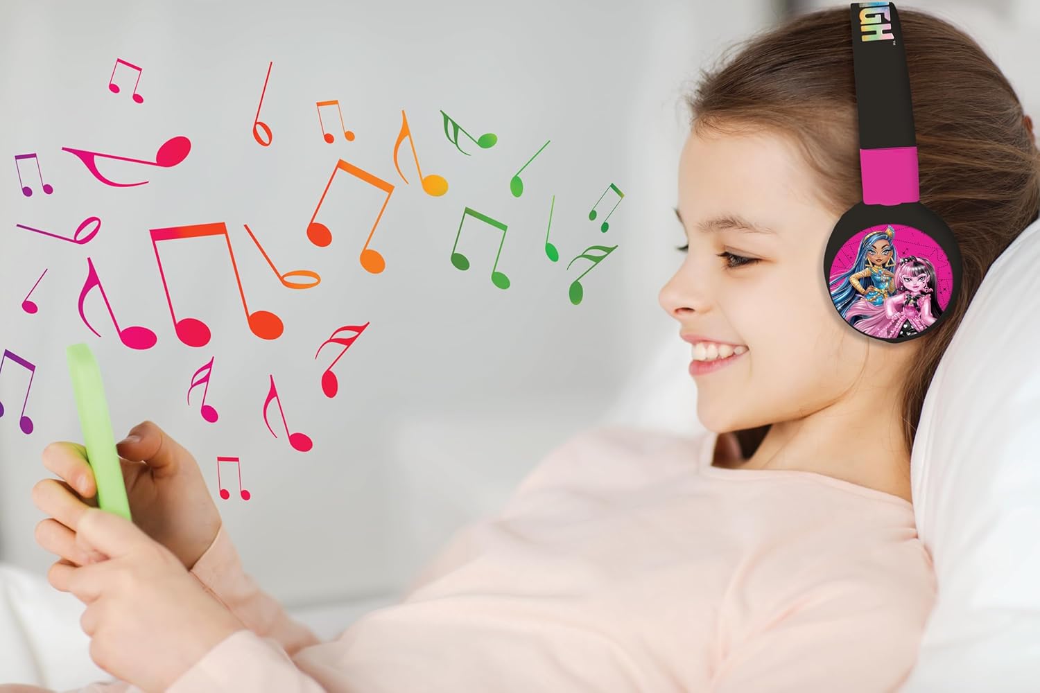 - 2 IN 1 MONSTER HIGH-KOPFHÖRER - Hören Sie Ihre Musik kabellos über Bluetooth 5.0 oder kabelgebunden mit dem mitgelieferten abnehmbaren Audiokabel, zusammen mit Frankie Stein, Draculaura, Clawdeen, Cleo de Nile und Lagoona Blue.