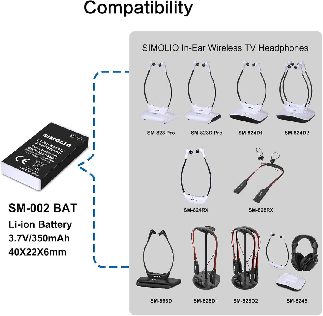 - Li-Ionen-Akku für Simolio Kabellose TV Kopfhörer SM-823 Pro, SM-823D Pro, SM-824D1 und SM-824D2