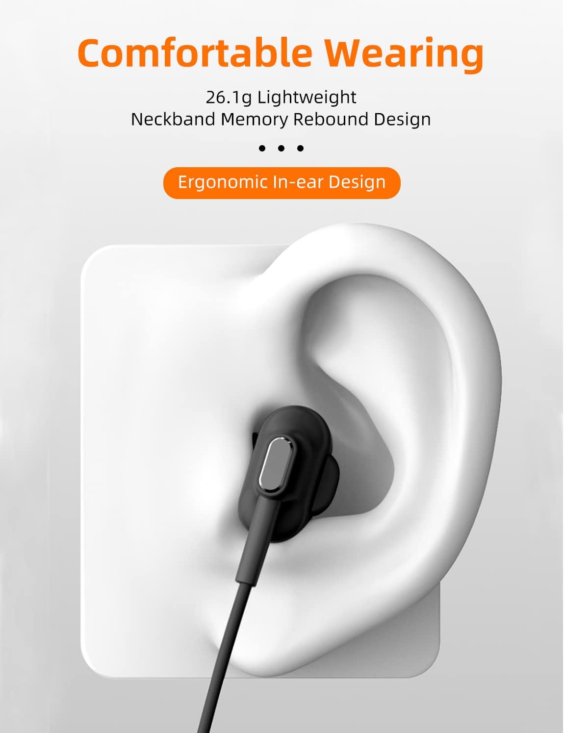 - Der Bluetooth Kopfhörer hat ein leichtes und ergonomisches Design, wiegt nur 26,1 Gramm, und hat zusätzliche S/M/L-Grössen weiche Silikon-Ohrhaken, damit er bequem und sicher sitzt, auch bei den intensivsten Trainingseinheiten
