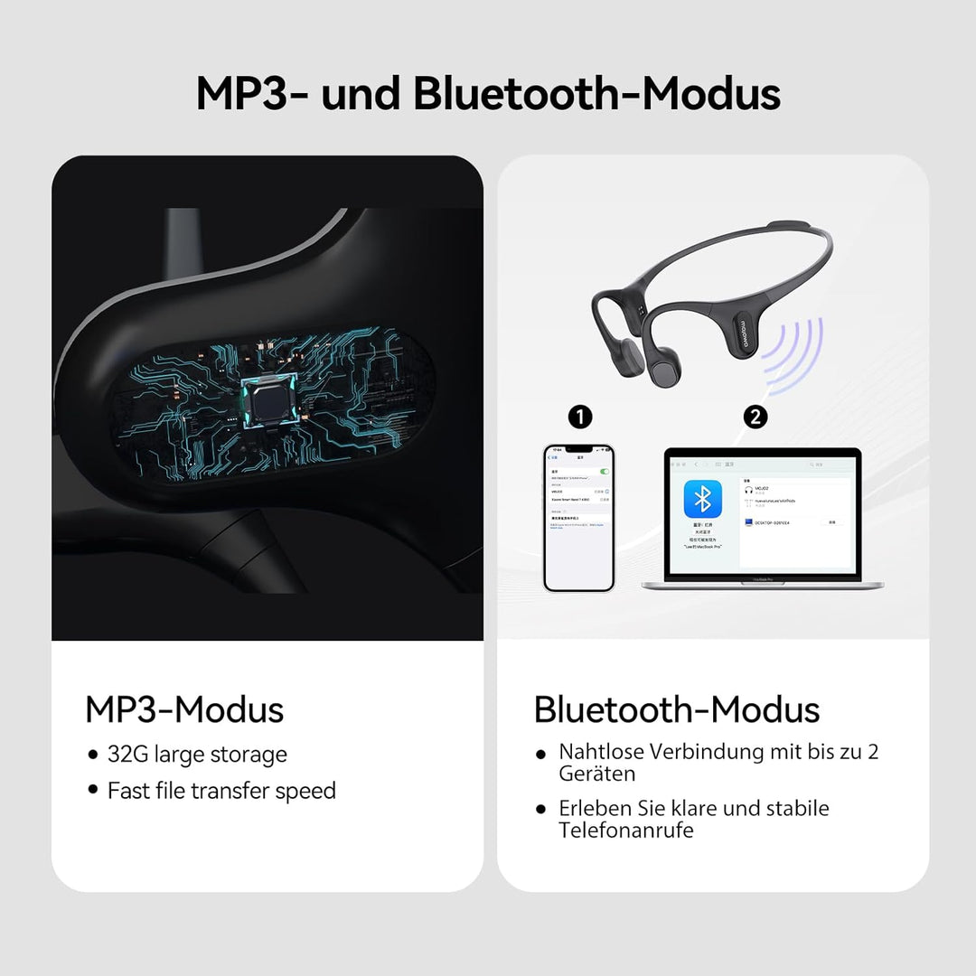 - 【MP3-Modus & Bluetooth-Modus】Geniessen Sie Audiodatei mit integriertem MP3-Player wird mit einer 32-GB-Speicherkarte geliefert, die bis zu 8000 Songs oder Hörbücher ohne Telefon speichern kann. Alternativ kann über Bluetooth 5.2 verbunden werden.