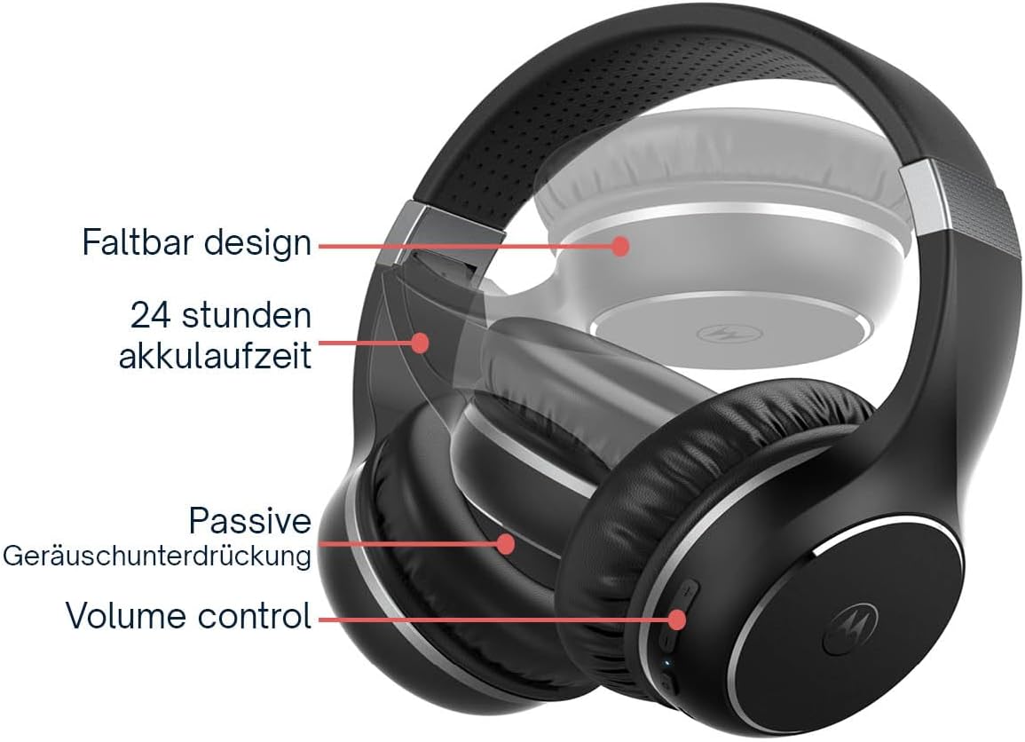 - FALTBARES DESIGN - Die kabellosen Kopfhörer Motorola Sound MOTO XT220 haben ein faltbares Design, das Platz auf Ihrem Schreibtisch und in Ihrem Koffer oder Ihrer Tasche spart. So können Sie ihn überallhin mitnehmen und er nimmt kaum Platz weg.
