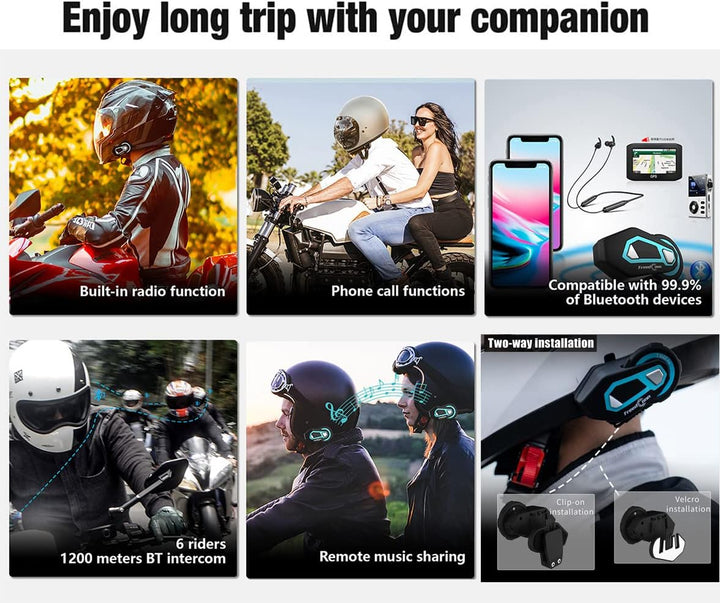 - ★【FM FUNKTIO, MUSIK TEILEN】: Nach Bluetooth-Verbindung zwischen 2 FreedConn T-Max Pro Motorrad Headsets könnten Sie mit dem Mitfahrer oder mit einem anderen Motorräder die gemeinsame Musik hören. FreedConn T-Max Pro Motorradhelm Bluetooth