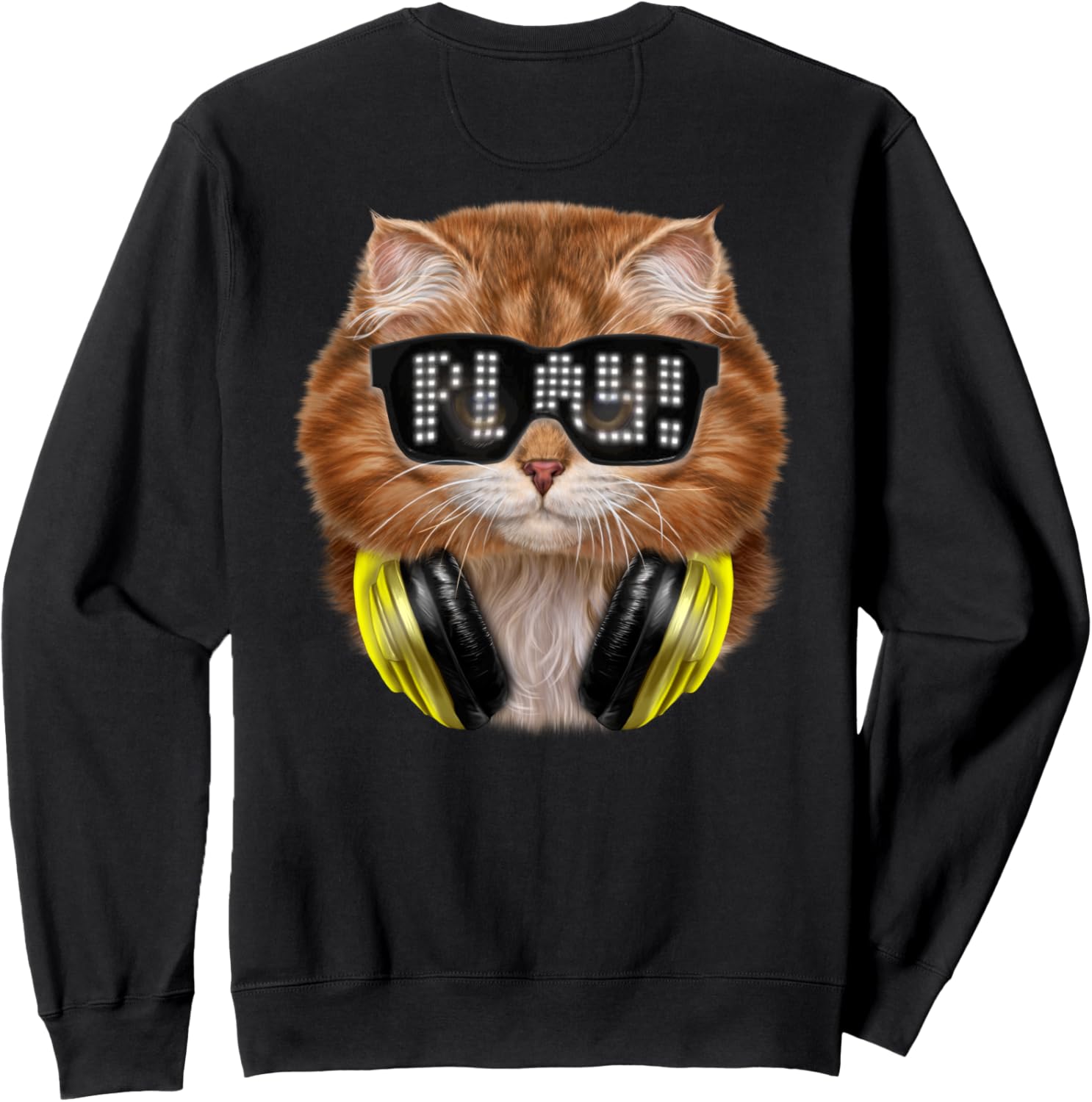 Orange Katze, die Hipster-Sonnenbrille und Kopfhörer trägt Sweatshirt