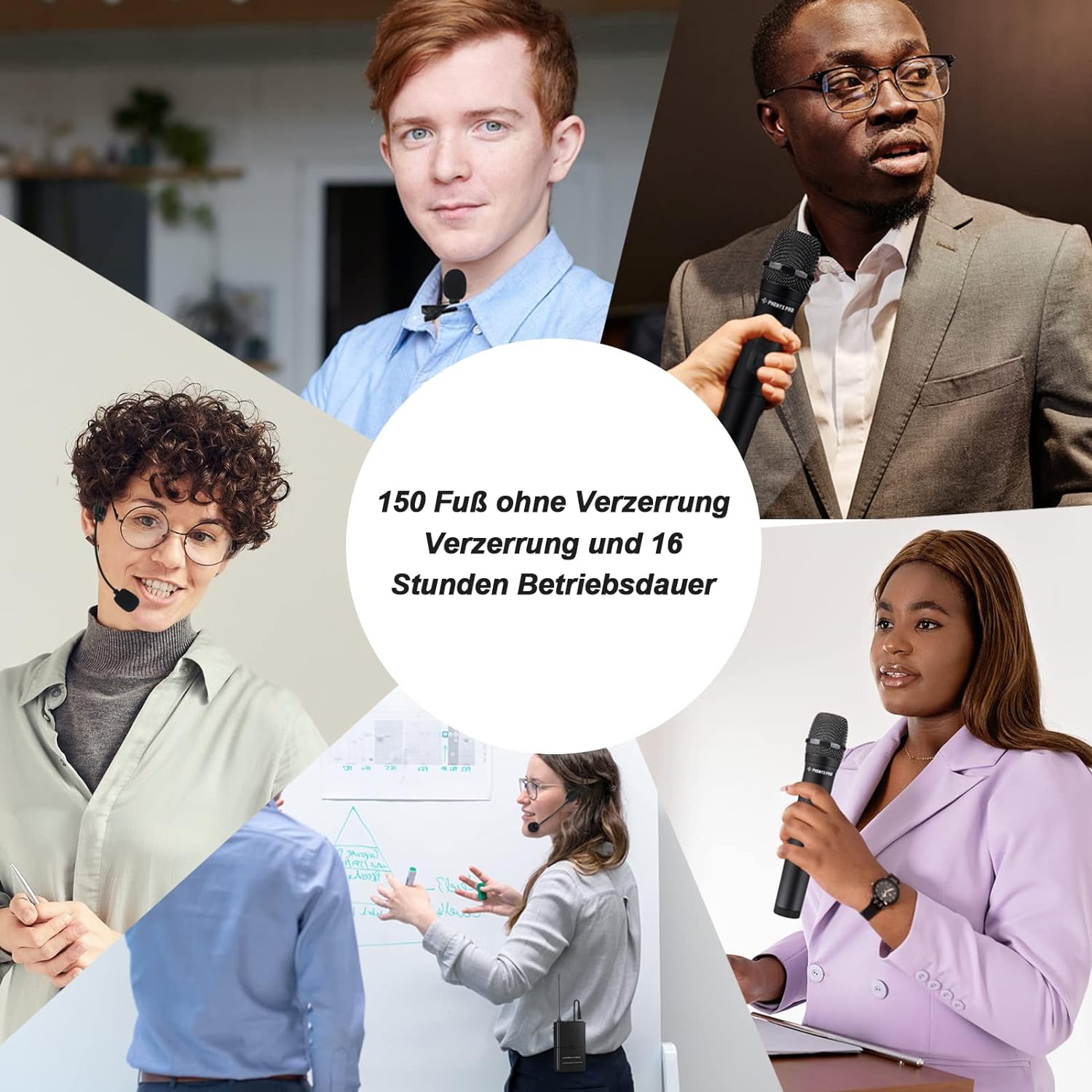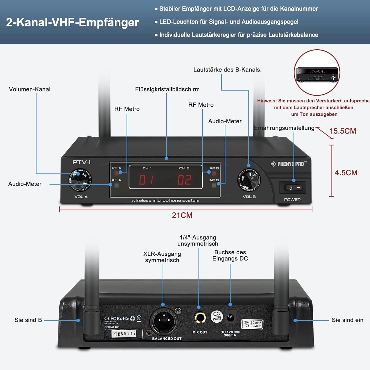 - SMOOTH WIRELESS PERFORMANCE:Zwei-Kanal-VHF-Drahtlos-Mikrofonsystem, gut für störungsfreie Leistung und problemlose Tonübertragung konzipiert.Schnelle und reibungslose drahtlose Synchronisierung für Plug-and-Go-Setup.Leicht zu lesen LCD-Display zeigt