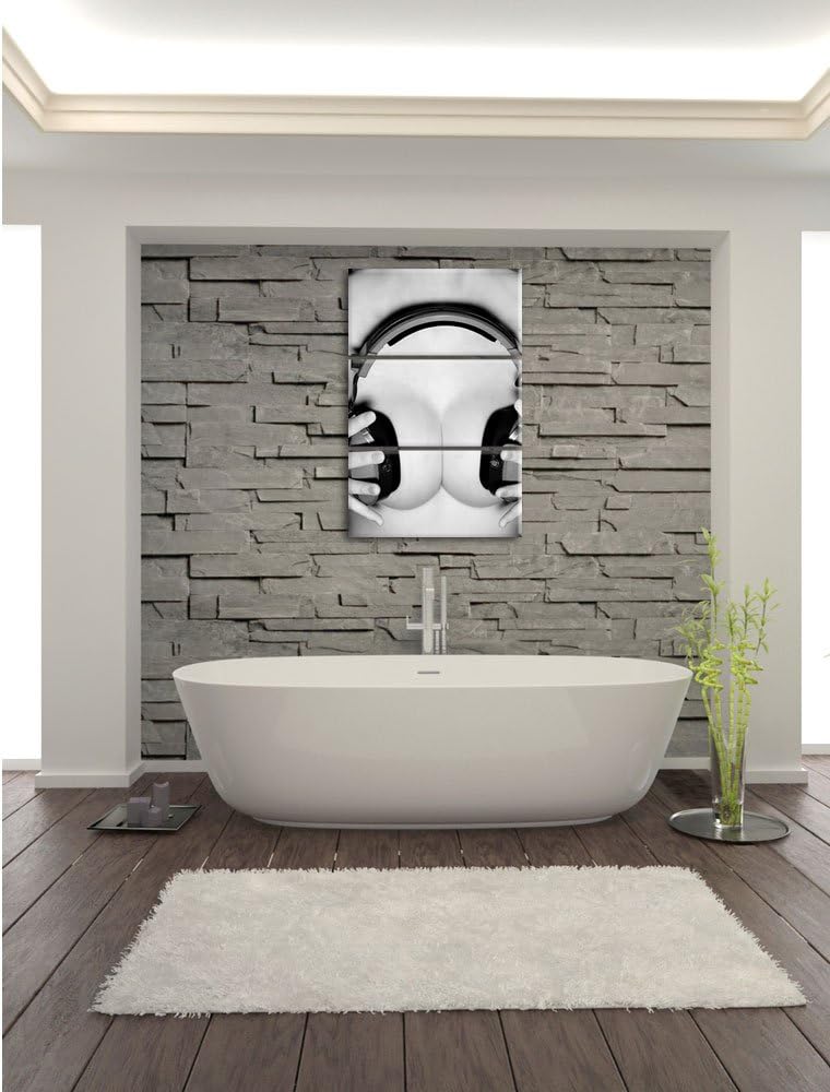 Pixxprint Dark Sexy Girl Kopfhörer 3-Teiler Leinwandbild 120x80 Bild auf Leinwand