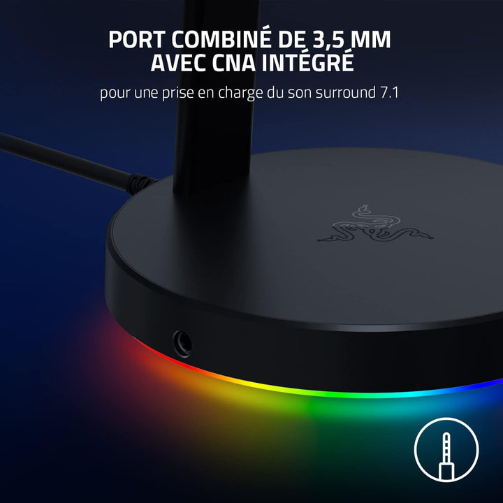 - Produkt 2: Powered by Razer Chroma RGB: Mit 16,8 Millionen Farben und einer ganzen Reihe von Effekten lässt sich der Headset-Ständer individuell anpassen und mit dem restlichen Setup synchronisieren. So können dynamische Beleuchtungseffekte bei über