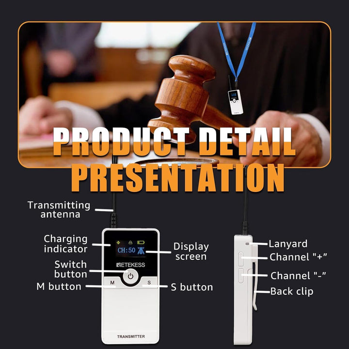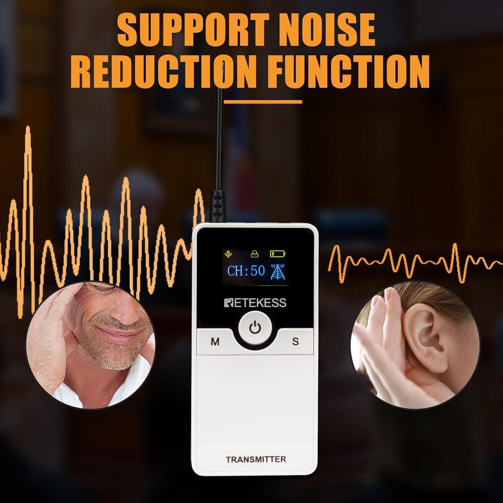 - Geräuschreduzierungstechnologie; Das Tourguide-System filtert Hintergrundgeräusche heraus; stellt sicher, dass die Tonübertragung klar und gut verständlich ist; Ein gutes Hörgerät für das Publikum; Trennt Ihr Publikum von Hintergrundgeräuschen