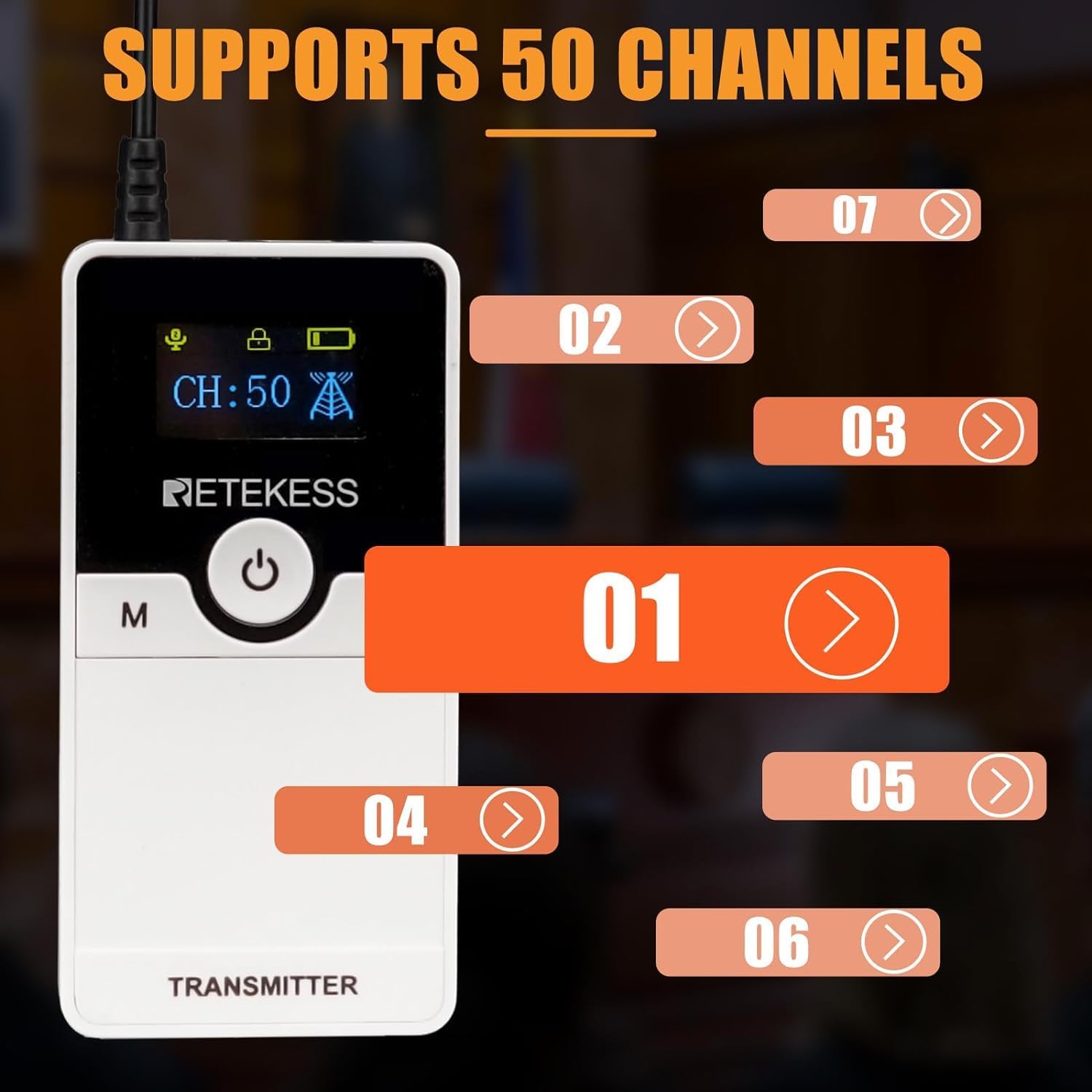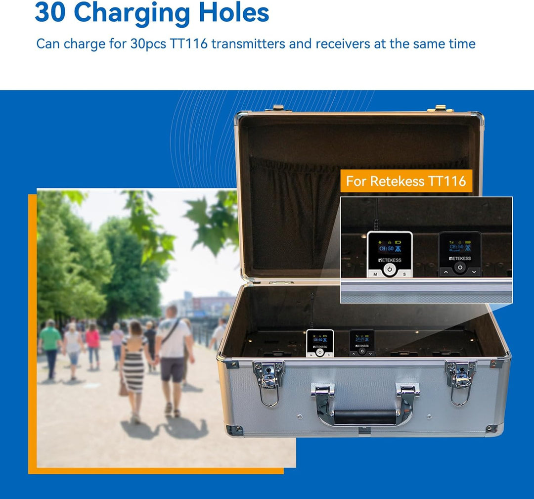 - 50 Kanal-IDs; Das drahtlose Tour Guide-Audiosystem TT116 bietet 50 Kanal-IDs; Das kirchliche Übersetzungssystem für Fabrikführungen kann mehrere Führungen oder Gruppen innerhalb derselben Fabrik aufnehmen, ohne dass es zu Störungen zwischen den 50