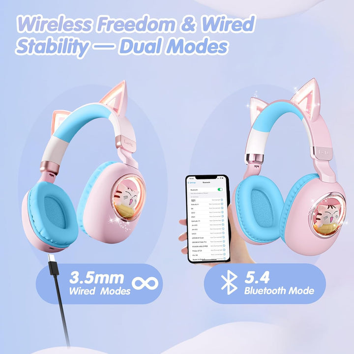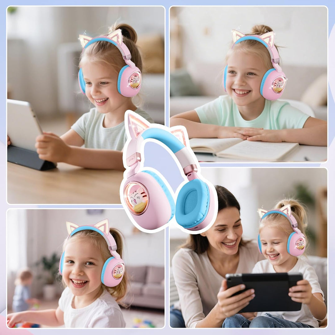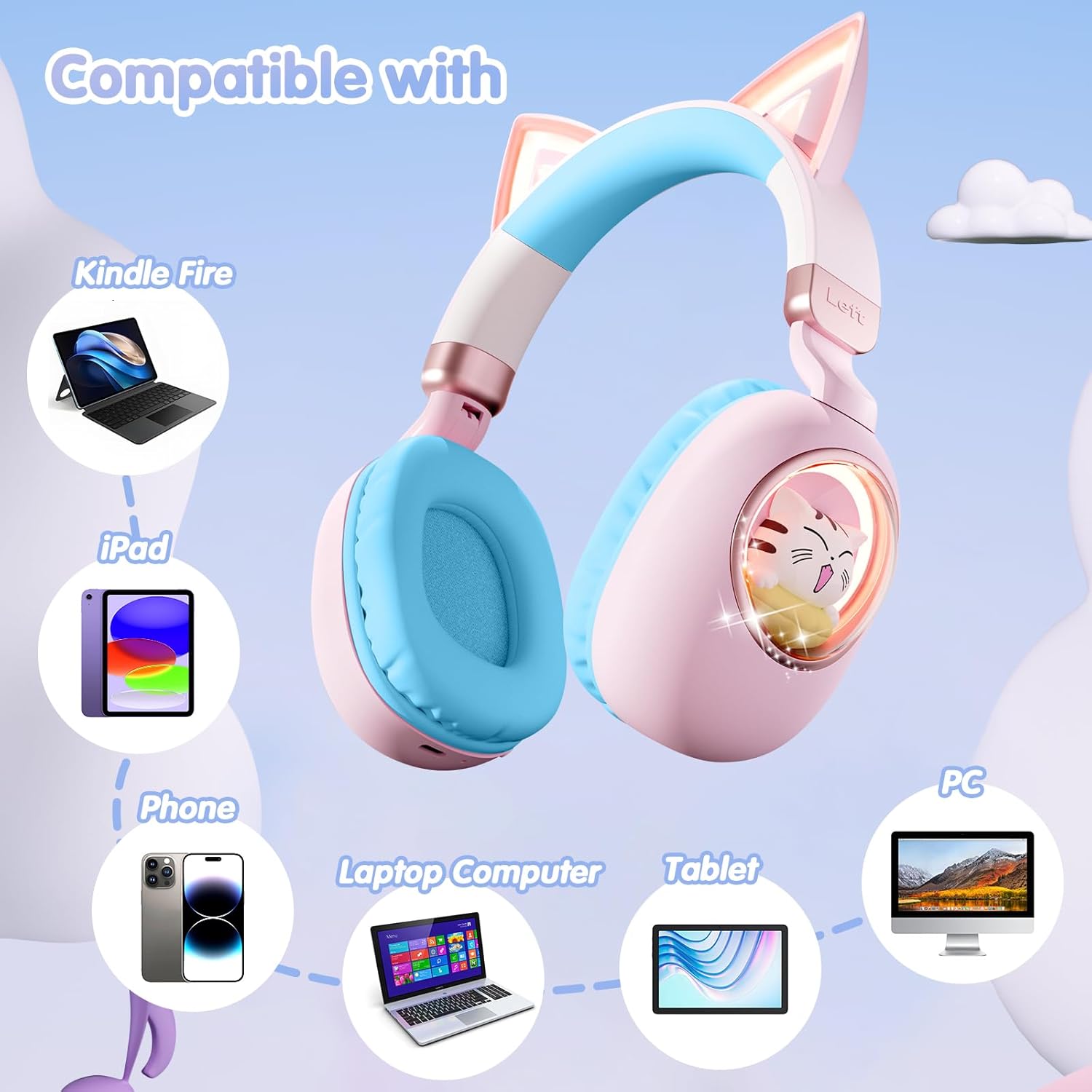 - 【LED Katzenohr Design】 Sunvito Bluetooth Kinder kopfhörer verbinden niedliche Katzenohren mit einem coolen Space-Capsule-Design – eine kleine Welt voller Spass! Bunte LED Kinderkopfhörer mit RGB-Leuchten lassen die Kopfhörer strahlen und ziehen