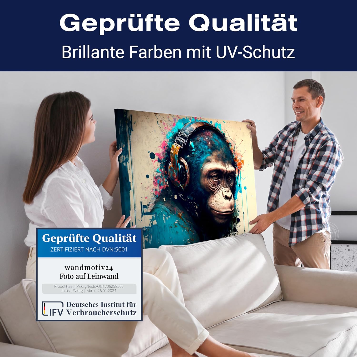 Variante: 80x60cm Leinwandbild Digital Art Affe Querformat M0645