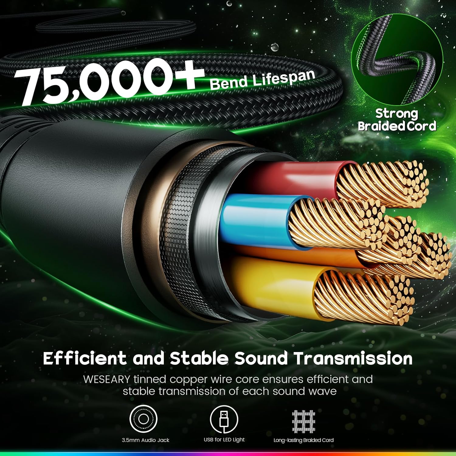 - 🌟【Kristallklarer Surround-Sound】Das WESEARY Gaming Headset ist mit 40-mm-High-Density-Dual-Neodym-Audiotreibern ausgestattet, die einen lebensechten Stereo-Surround-Sound bieten, der jedes Detail Ihrer Lieblingsspiele.