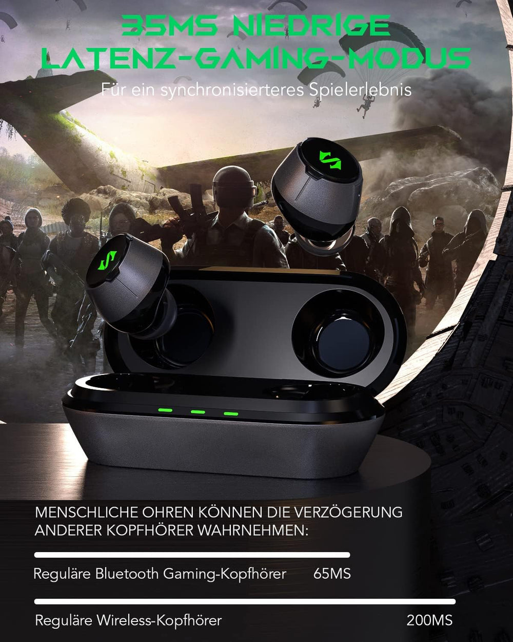 Black Shark Bluetooth Kopfhörer mit 35ms Ultra-niedriger Latenz, Kopfhörer Kabellos mit Sound in Stu