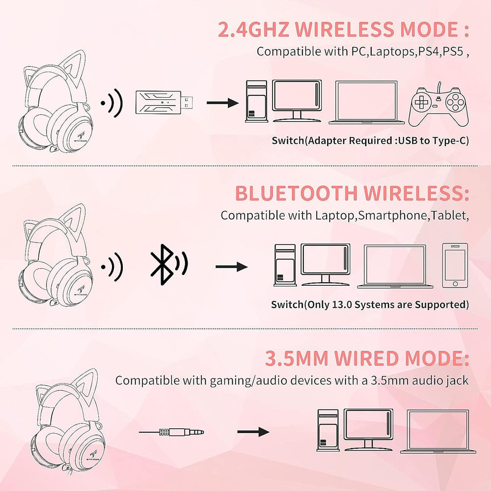 SOMIC Cat Ear Kopfhörer, 2.4GHz Wireless Gaming Headset für PS4/5, PC, Bluetooth Headset für Smartph