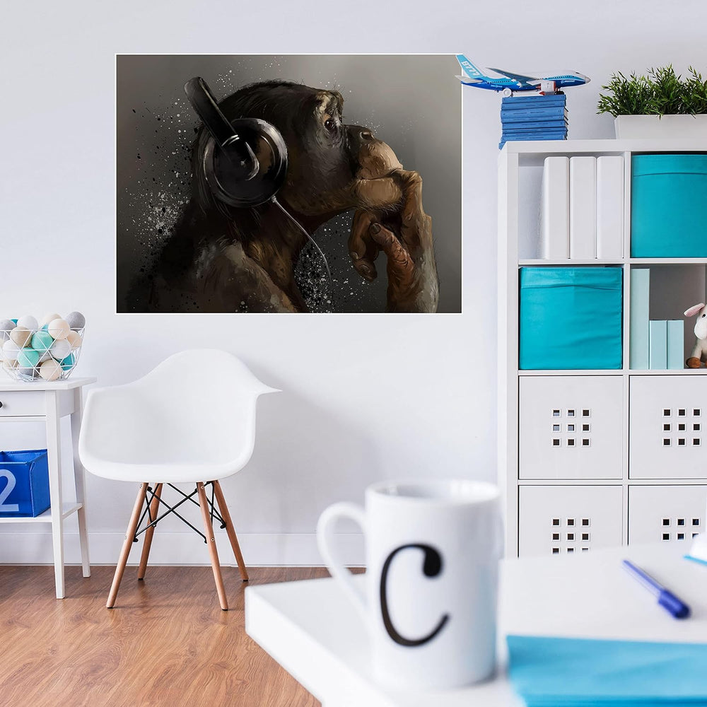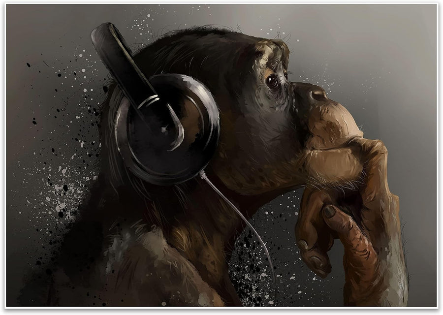 wandmotiv24 Poster als Wanddeko, Grösse Din A1, AFFE mit Kopfhörer, Headset, Musik, Tiere, Affen, Mo