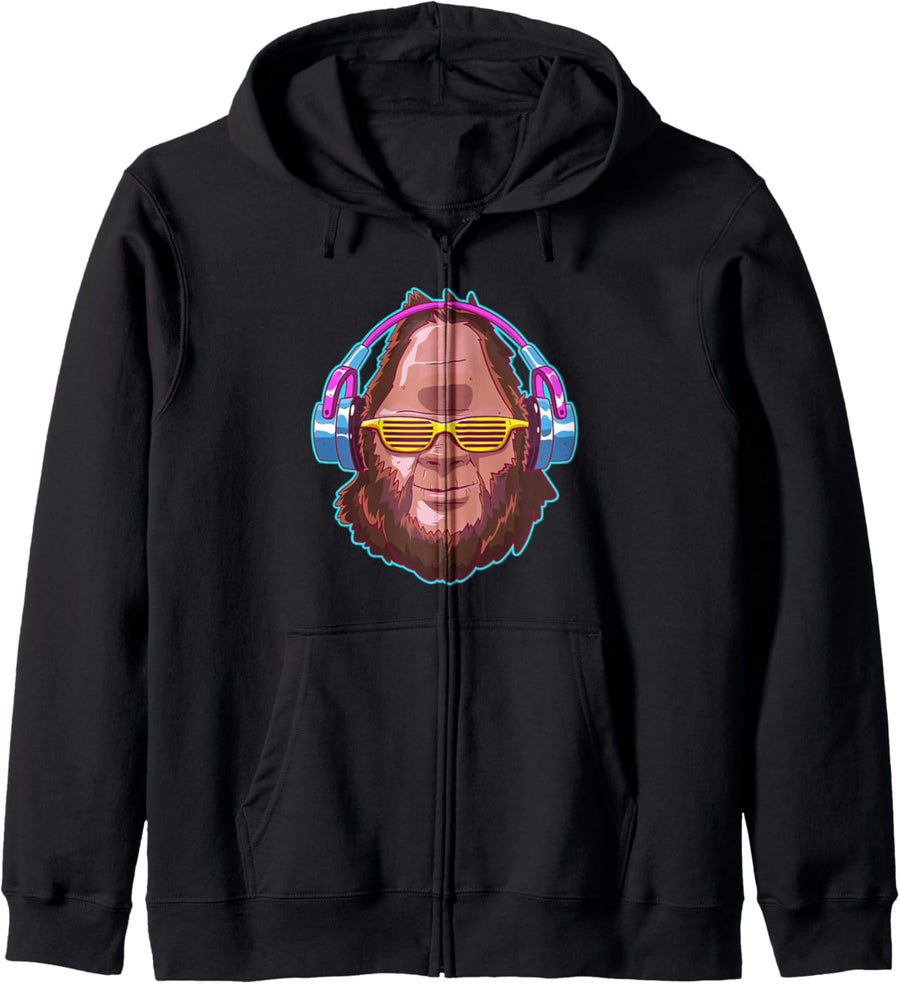 Wissen Bigfoot Achtziger Rock Kopfhörer Retro Sonnenbrille Kapuzenjacke