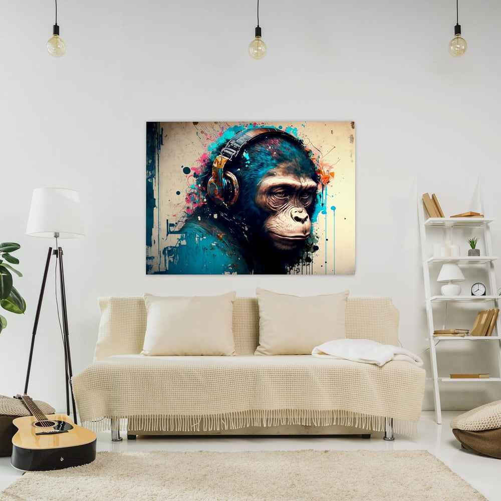 wandmotiv24 Leinwandbild Digital Art, 60x45cm, Querformat, AFFE, Kopfhörer, Deko, Bilder auf Leinwan