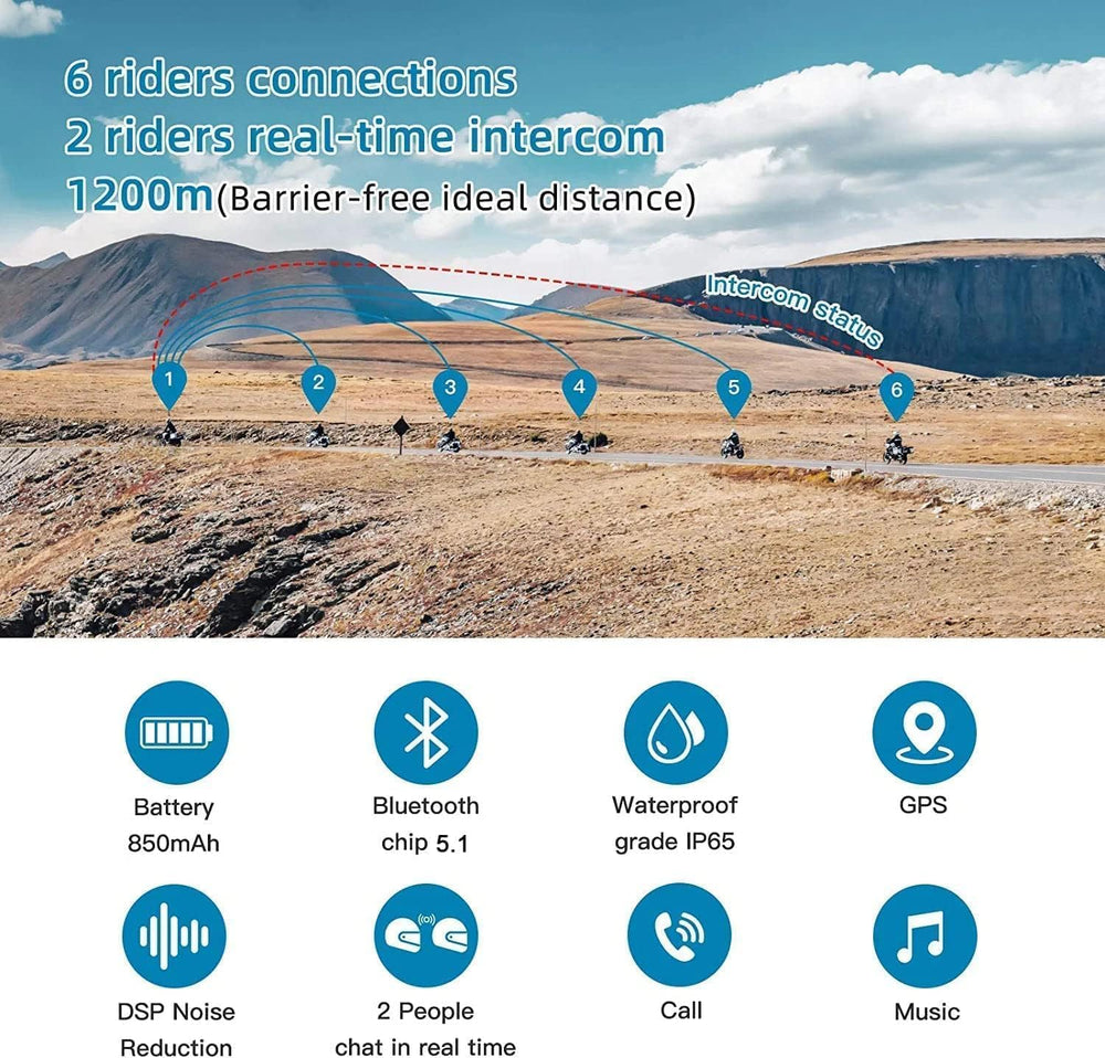EJEAS V6PRO Motorrad Intercom Bluetooth Headsets 1200m bis zu 6 Reiters DSP-Rauschunterdrückung, Was