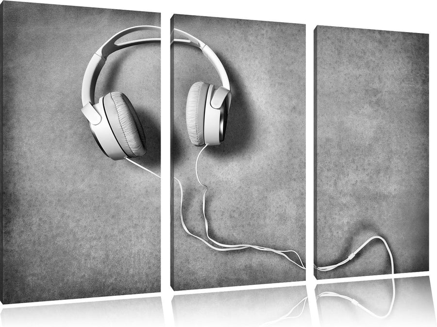 Pixxprint Kopfhörer 3-Teiler Leinwandbild 120x80 Bild auf Leinwand