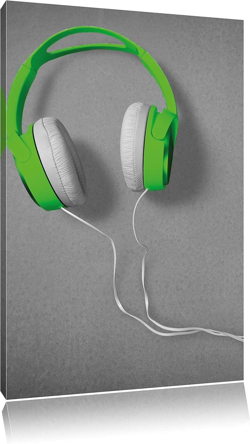 Pixxprint Coole grüne Kopfhörer schwarz/weiss als Leinwandbild/Grösse: 120x80 cm/Wandbild/Kunstdruck