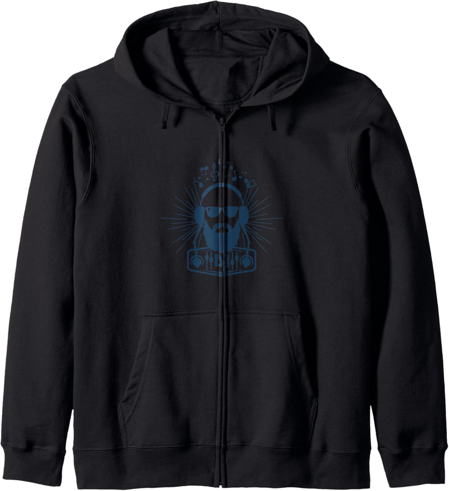 Hipster DJ mit Bart und Kopfhörer Musik Geschenk Kapuzenjacke