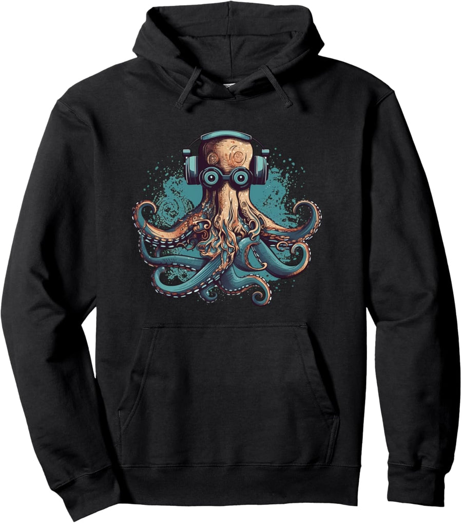 Cooler Nerdy Oktopus mit Brille und Kopfhörern Pullover Hoodie