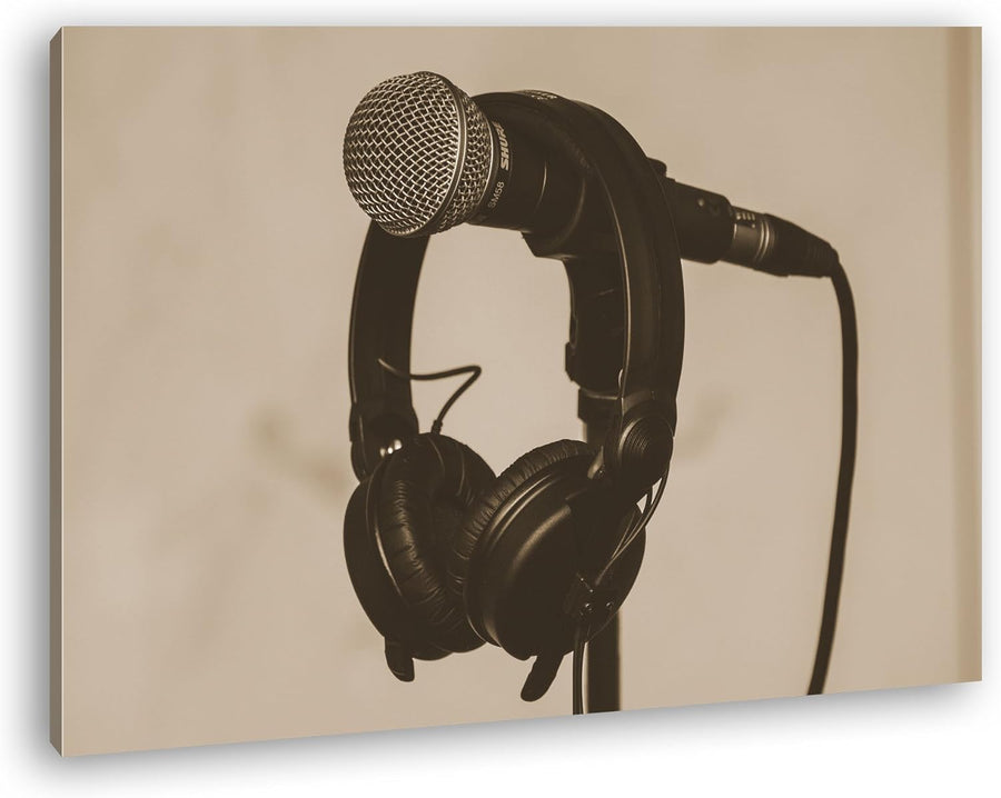 deyoli Mikrophon und Kopfhörer Format: 80x60 Effekt: Sepia als Leinwand, Motiv fertig gerahmt auf Ec