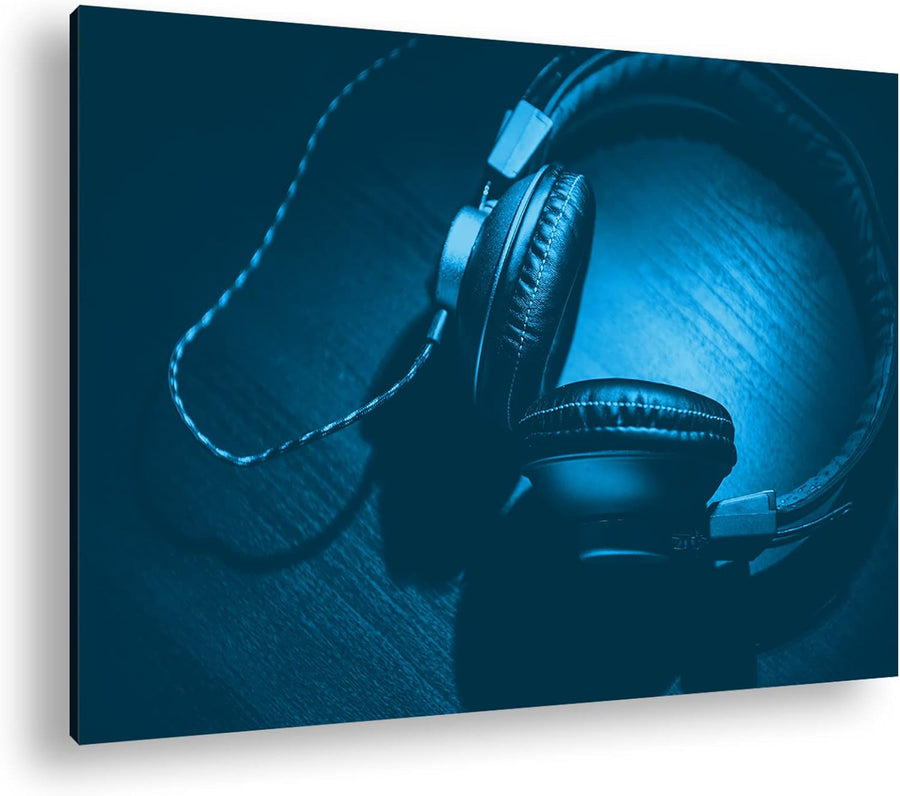 deyoli Stereo Audio Kopfhörer Format: 80x60 Effekt: Monocrome Blau als Leinwandbild, Motiv fertig ge