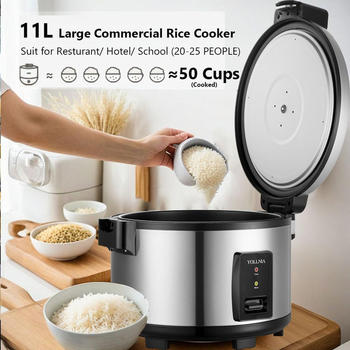 - 【11L Grosse Kapazität】Der Reiskocher aus Edelstahl hat ein Fassungsvermögen von 11 Liter, dank dem Sie 25 Tassen Reis, gekochter Reis für 25 bis 30 Personen, kleine Hotels, Schulen, Restaurants oder Partys bei einem Familientreffen kochen können