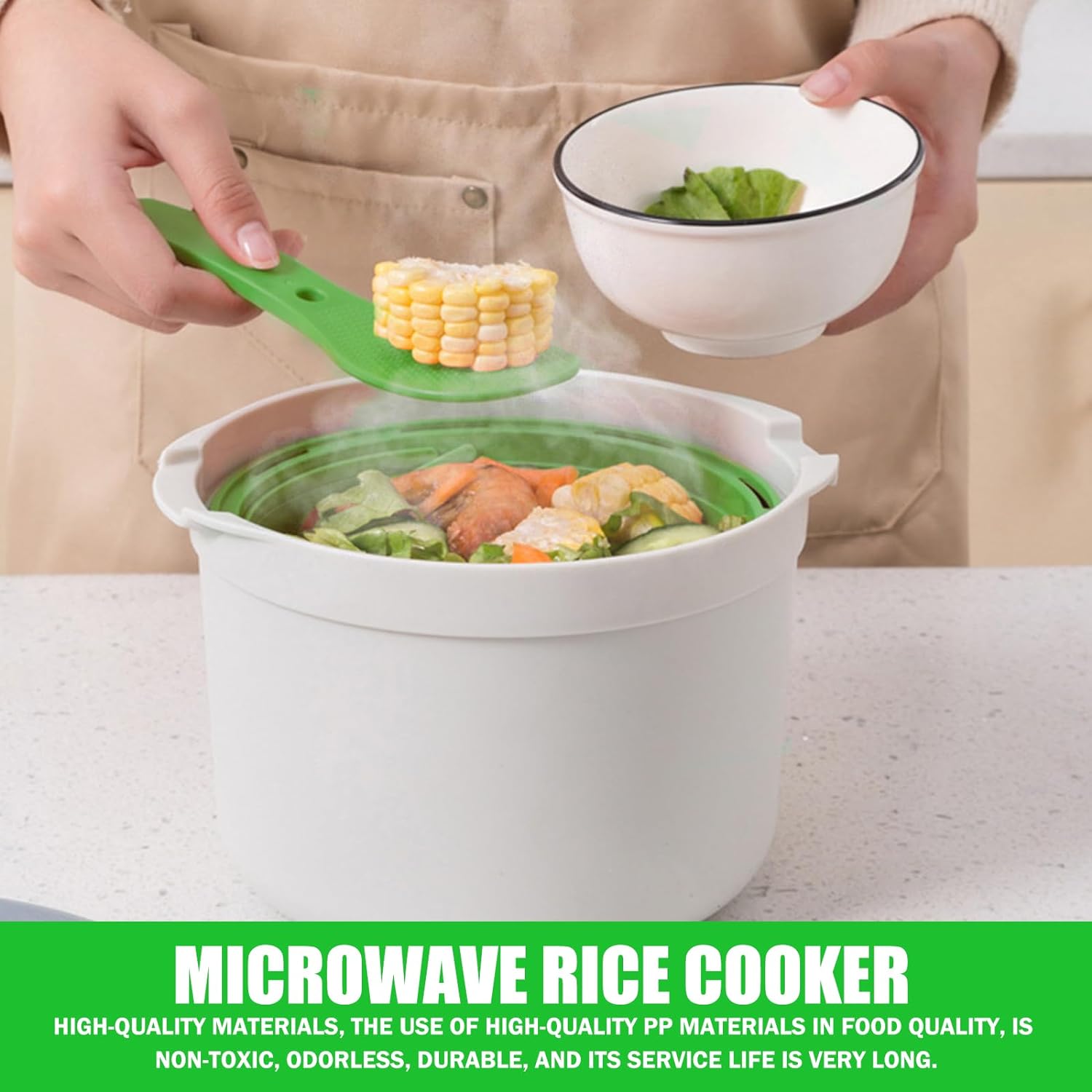 - 【Grosse Kapazität】Mit einem beeindruckenden Fassungsvermögen von 2 Litern bietet dieser 2L Mikrowellen Reiskocher ausreichend Platz, um eine grosszügige Menge Reis zuzubereiten. 2L Mikrowellen Dampfgarer grosszügige Kapazität ermöglicht es