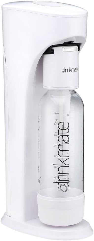 - NÜTZLICH - Ein Wassersprudler DRINKMATE AquaDream mit einer 1,1-Liter-Flasche für die Herstellung von Sprudelwasser und anderen kohlensäurehaltigen Getränken. Der Sprudler misst 20 x 13 x 41 cm. Er ist in weisser Farbe.