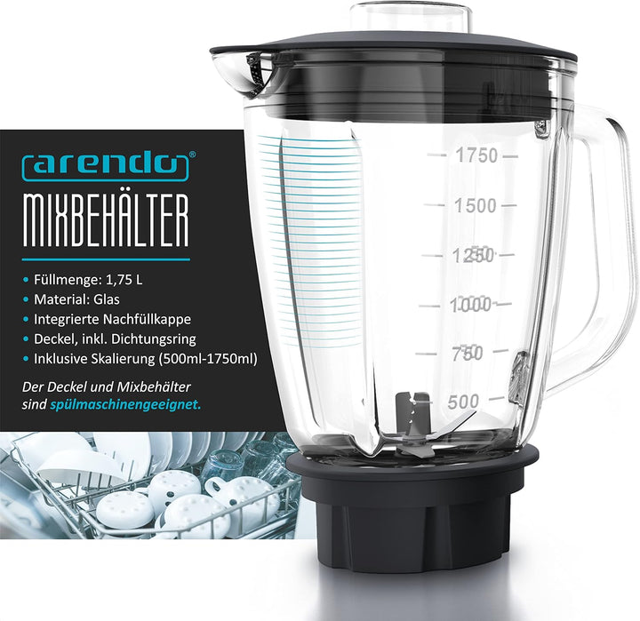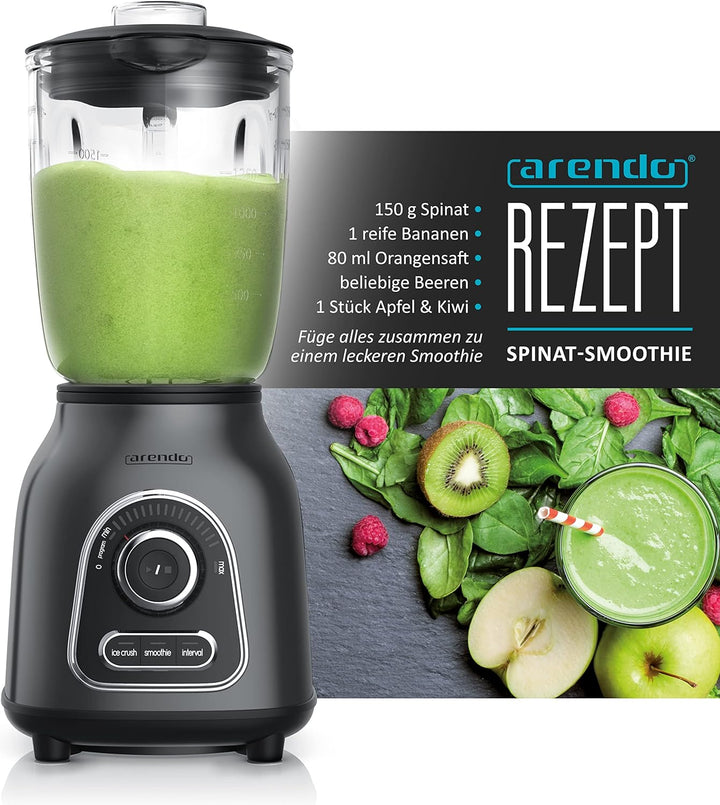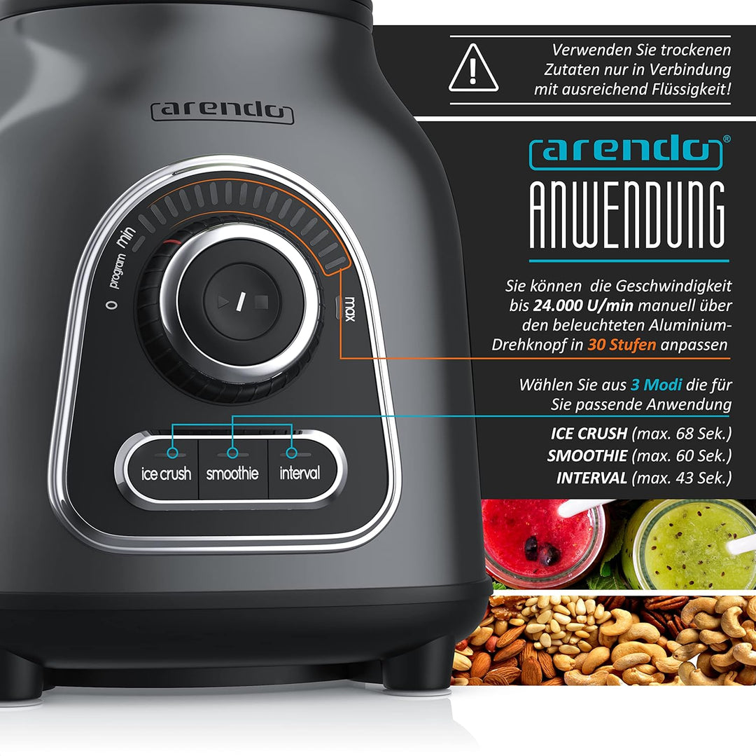 - Mit dem Arendo Edelstahl Standmixer bringen Sie die geballte Kraft von 1400 Watt auf die Sechsfach-Klingen und kreieren köstliche, schmackhafte Suppen und Saucen wie nie zuvor. Kredenzen Sie nahrhafte Drinks aus Gemüse und Obst und heben Sie Ihre