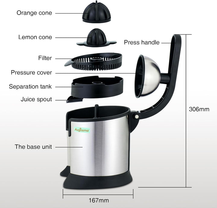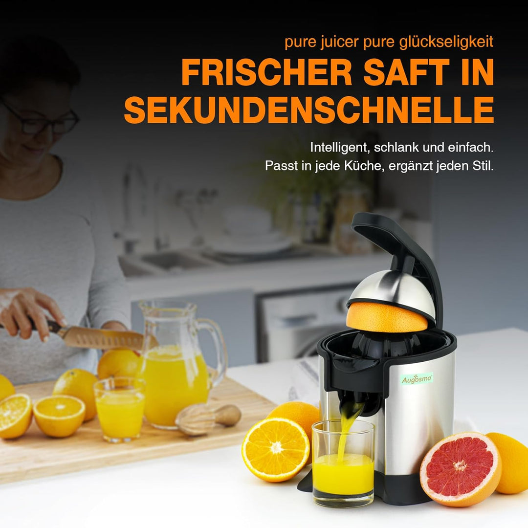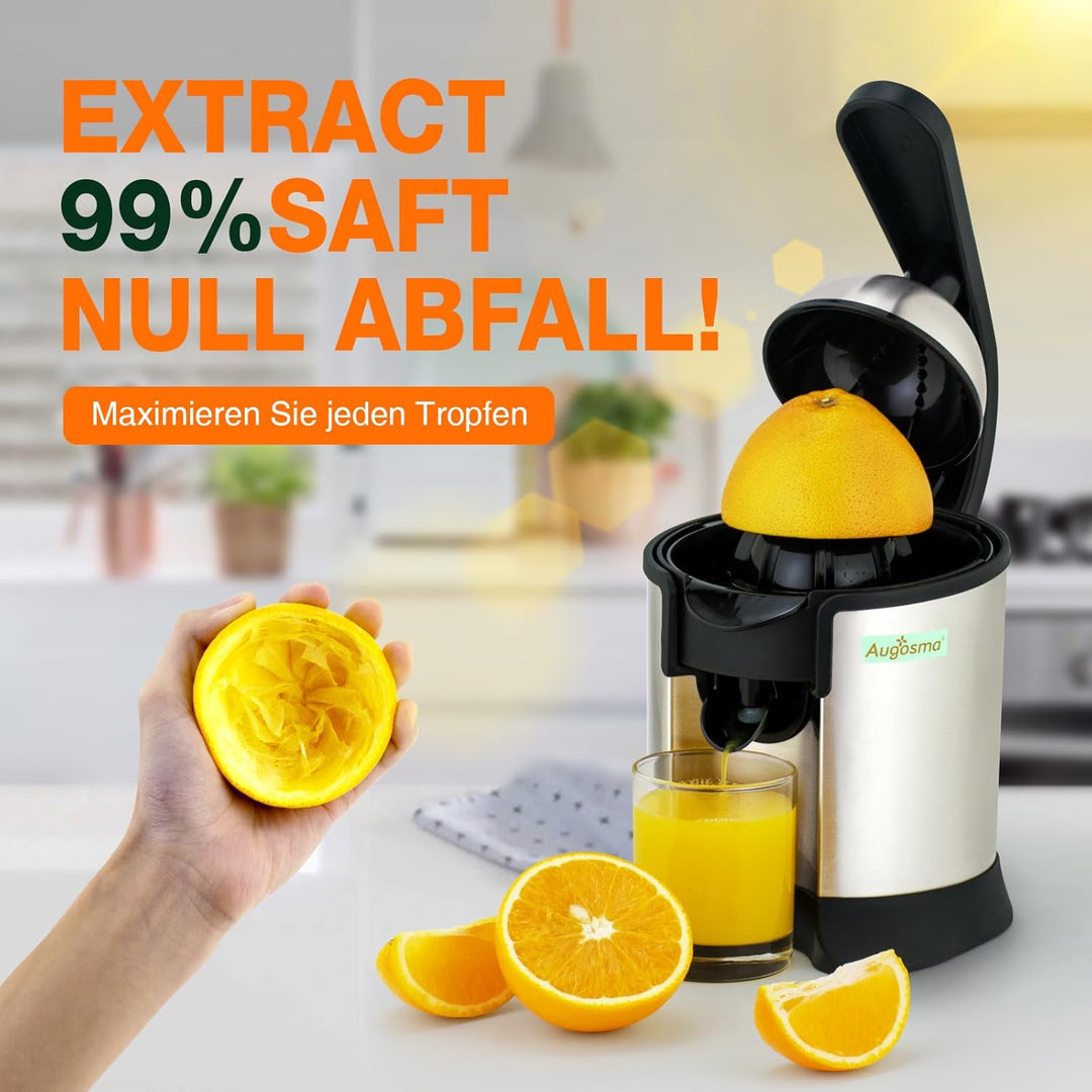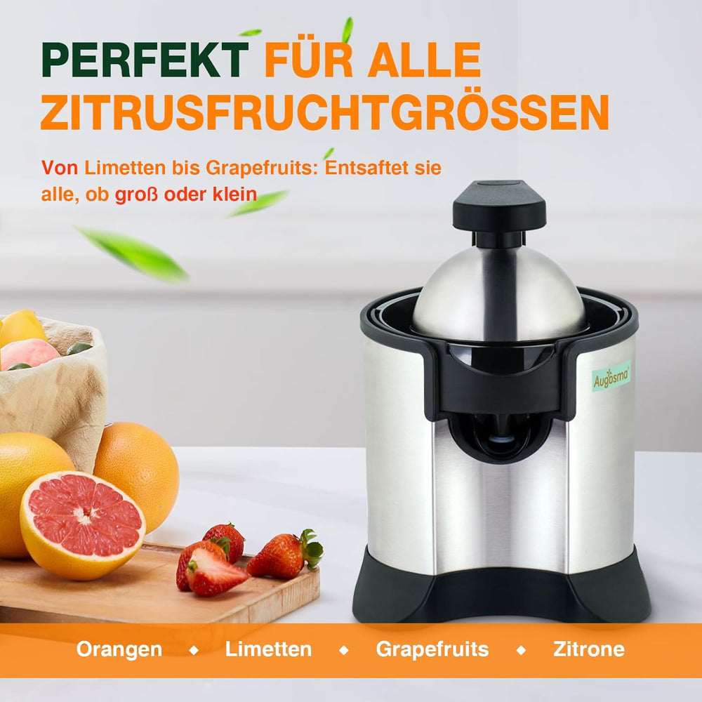 - EDELSTAHLKONSTRUKTION: Dieser elektrische Entsafter für Orangen und Zitronen zeichnet sich durch eine hochwertige Konstruktion aus, die sowohl Qualität als auch Ästhetik bietet - perfekt für jeden Küchenstil. Trotz des grösseren Designs wird er mit