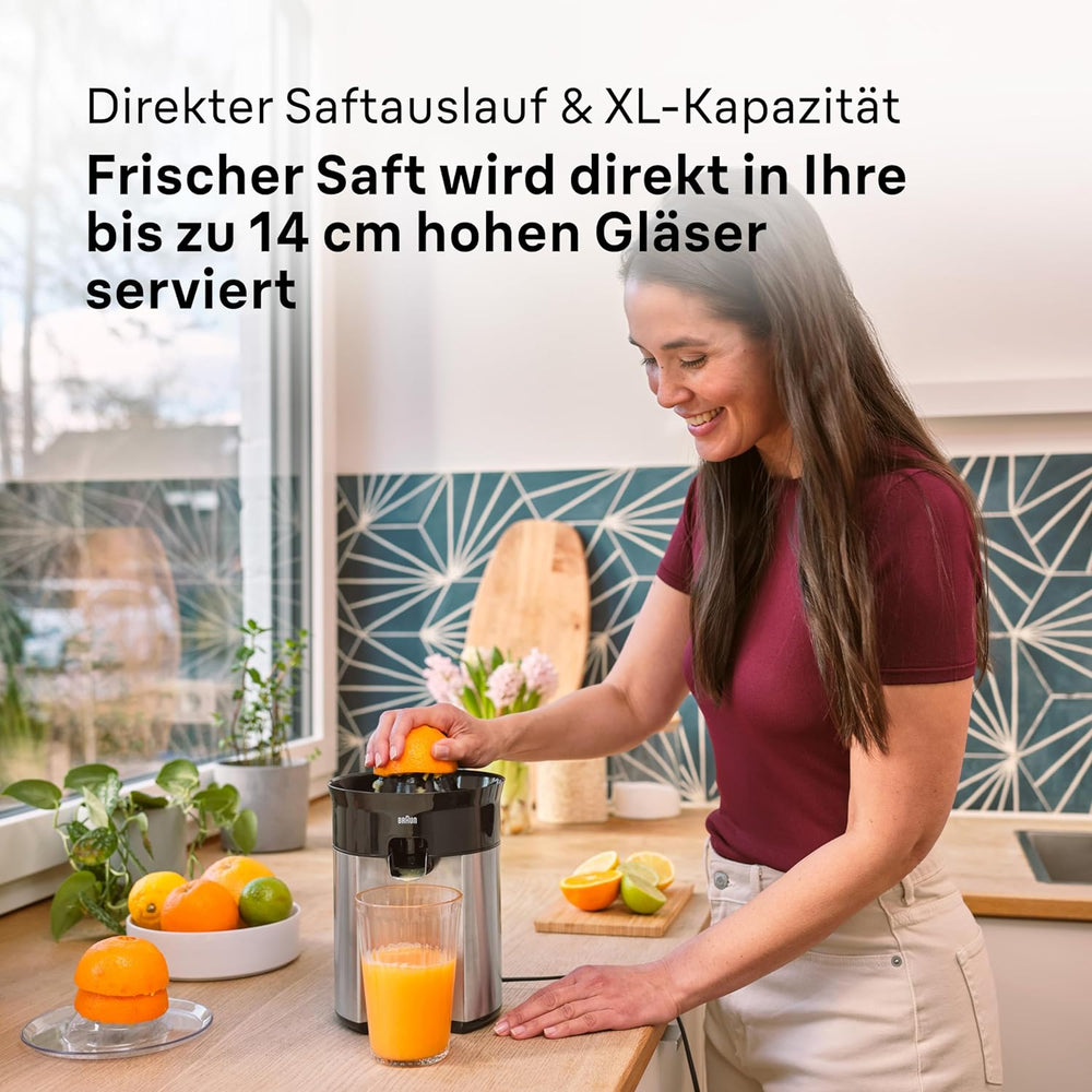 - XL-DESIGN: Der hohe Auslauf ist so konzipiert, dass er bequem auch für hohe Gläser bis zu 14 cm geeignet ist und so das Entsaften von grossen Mengen ermöglicht
