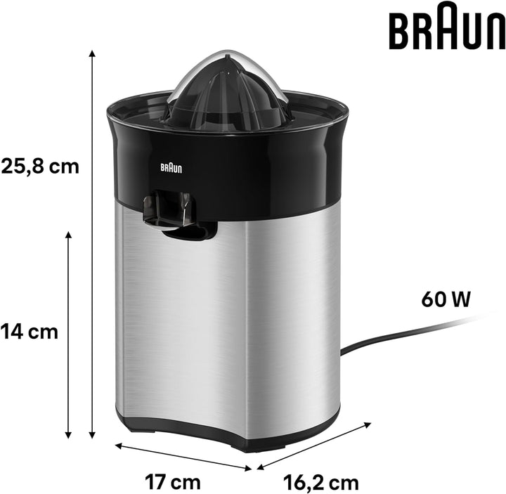 - START-/STOPP-AUTOMATIK: Für eine einfache Bedienung. Der Pressvorgang startet durch Herunterdrücken der Frucht. Beim Loslassen stoppt der Kegel.