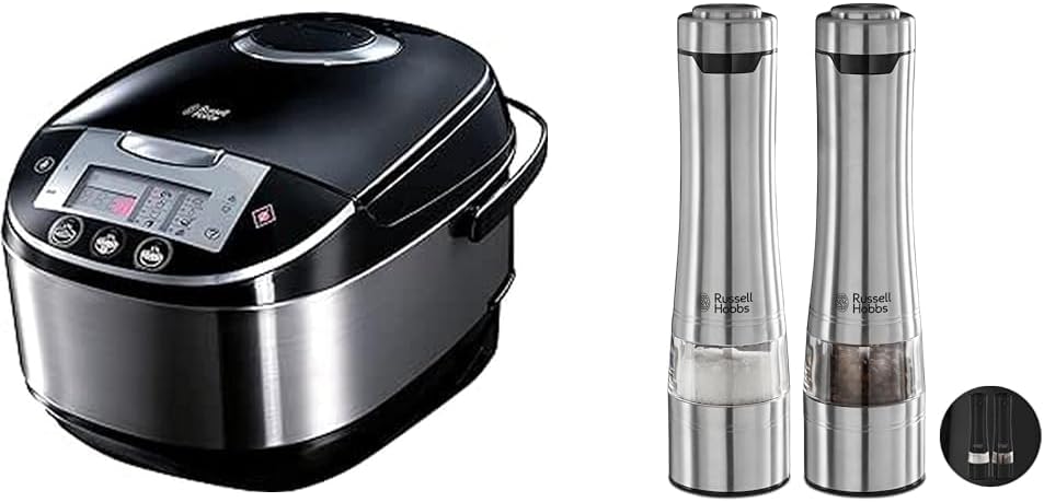 - Lieferumfang: 1 x elektrischen Multicooker von Russell Hobbs / Praktischer Multi Kocher inkl. Dampfkorb, Messbecher, Schöpflöffel, Schöpfkelle und antihaftbeschichtetem Kochtopf / 900 Watt, 5 L