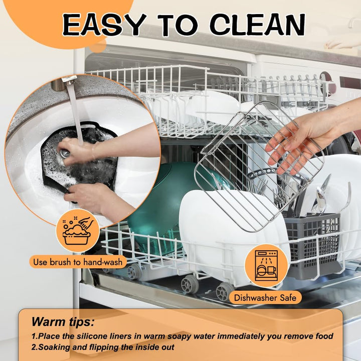 - 【Einfach zu reinigen】: Legen Sie die Zubehörteile sofort nach dem Entfernen der Lebensmittel in warmes Seifenwasser und bürsten Sie nach dem Einweichen, um hartnäckige Rückstände zu entfernen. Sie sind auch spülmaschinenfest