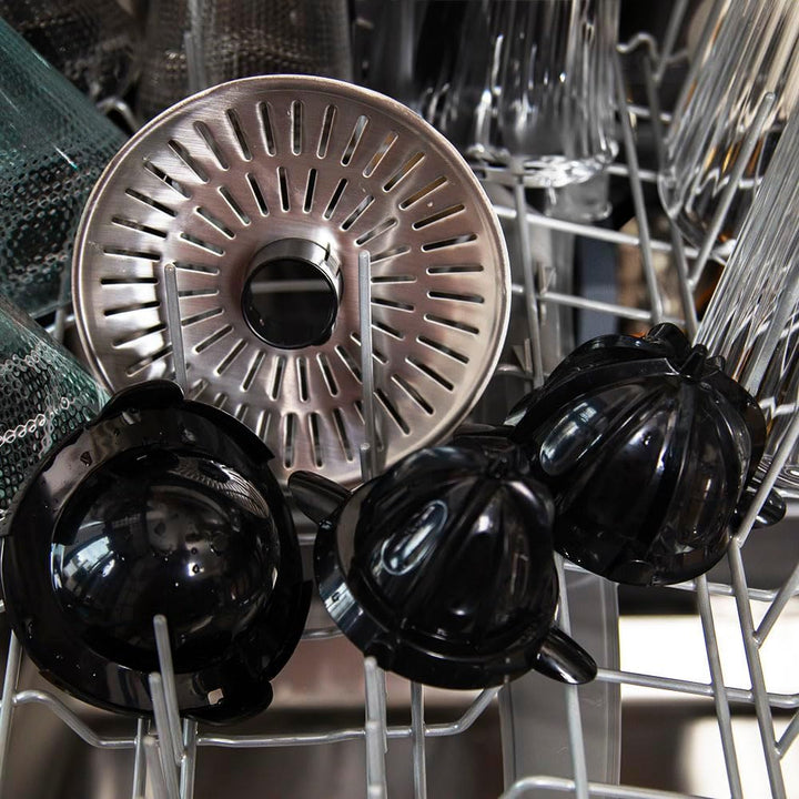 - Zwei abnehmbare Kunststoffkegel, passend für grössere oder kleinere Zitrusfrüchte.