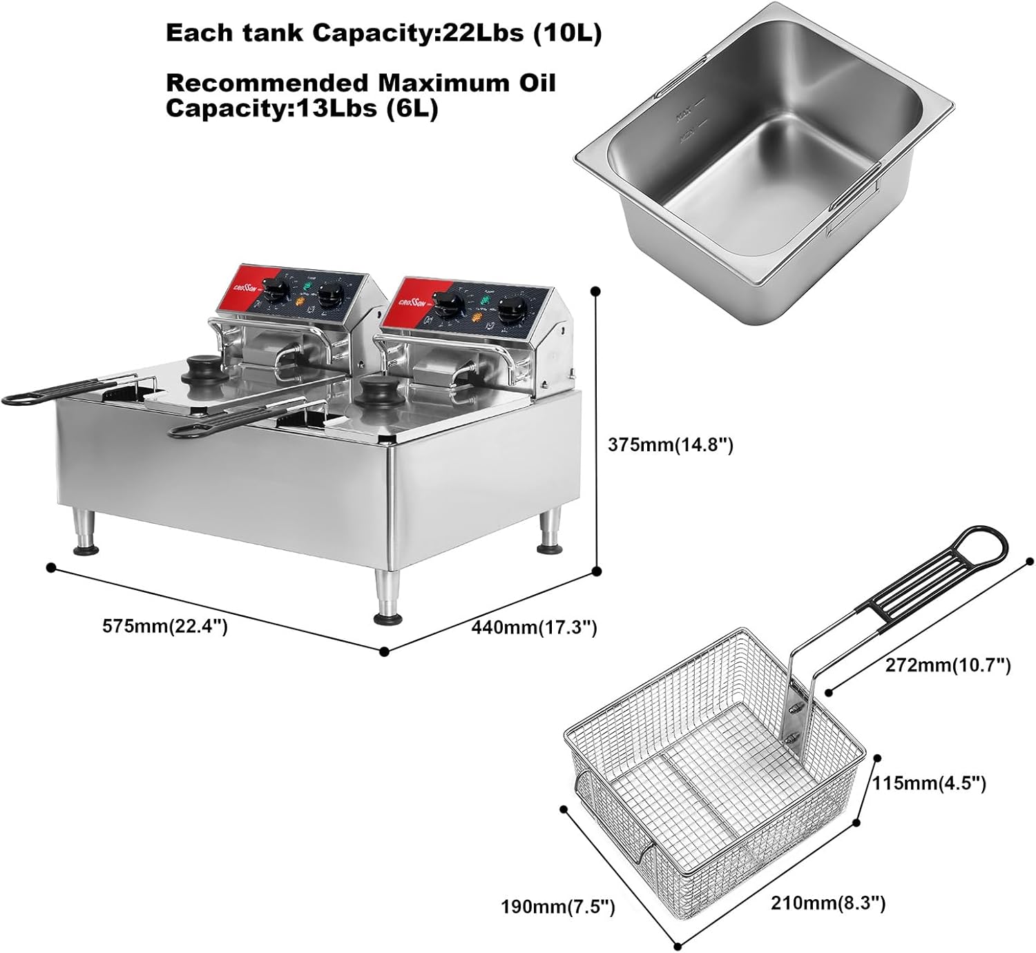 - LEISTUNGSSTARKE LEISTUNG: Leistungsstarke 3000*2 Watts-Fritteuse mit 12 Liter Ölkapazität, um Ihren hungrigen Kunden profitable frittierte Speisen zu servieren, diese Fritteuse kann nicht nur Lebensmittel schnell frittieren, sondern auch den perfekten