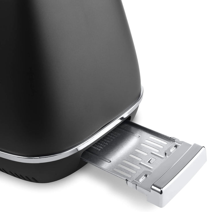 - Herausnehmbares Tablett: Der Toaster verfügt über eine Krümelauffangschale, die Sie aus dem Gerät herausnehmen können, um die Reinigung durchzuführen. Dadurch bleiben die Brotkrümel nicht auf dem Boden des Toasters stecken und sich beim nächsten