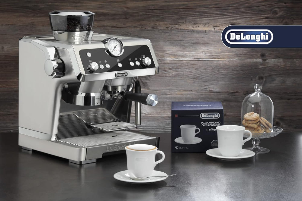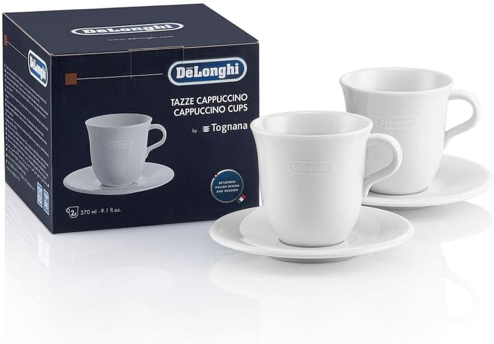 - Lieferumfang: 1 x Cappuccino Keramik Tassen Set DLSC309, 2 Kaffeetassen mit Untertassen von De'Longhi