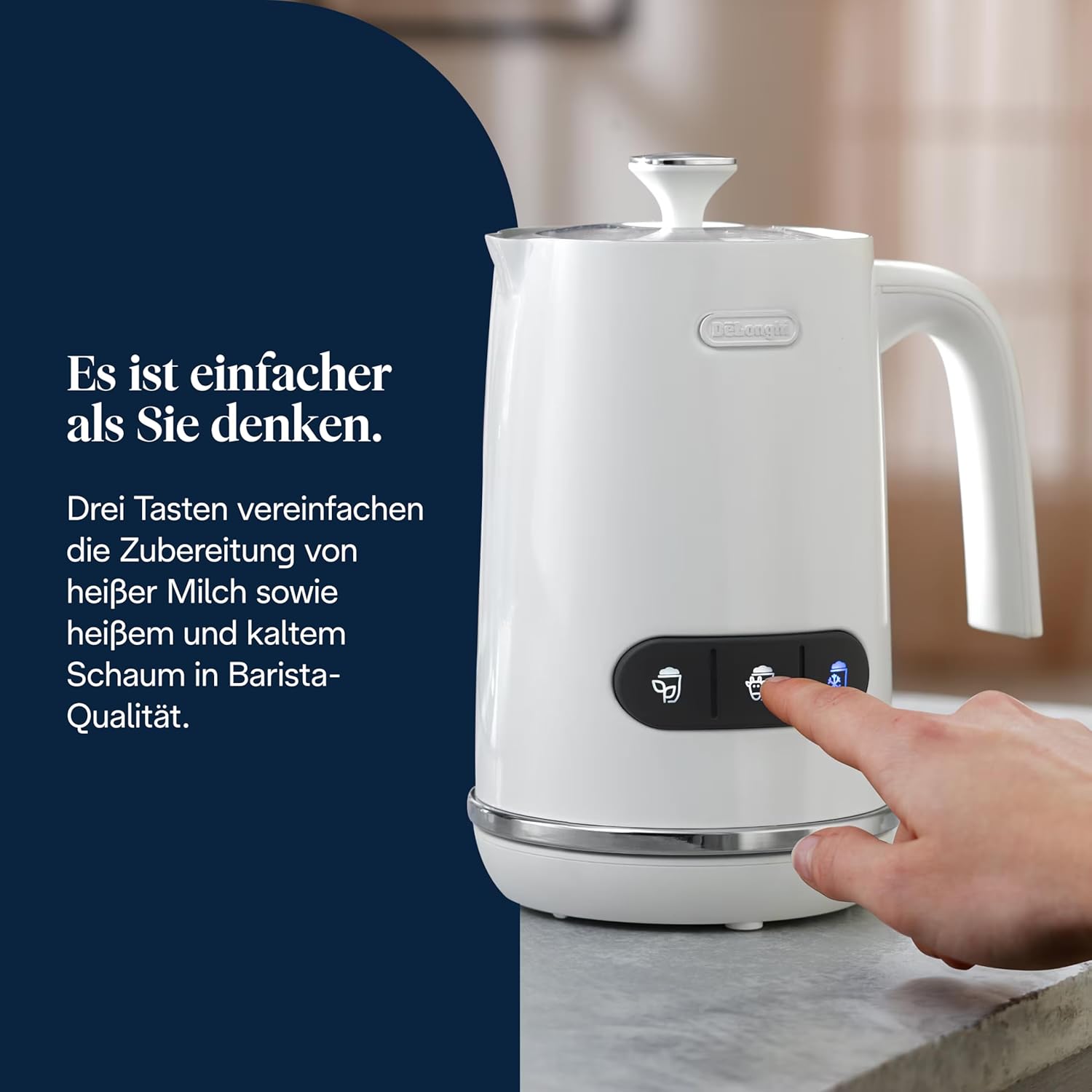 - LECKERER MILCHSCHAUM AUF KNOPFDRUCK: Milch einfüllen, Taste drücken – und geniessen; für luftigen, cremigen Schaum oder, durch Halten der Taste, heisse, samtige Milch