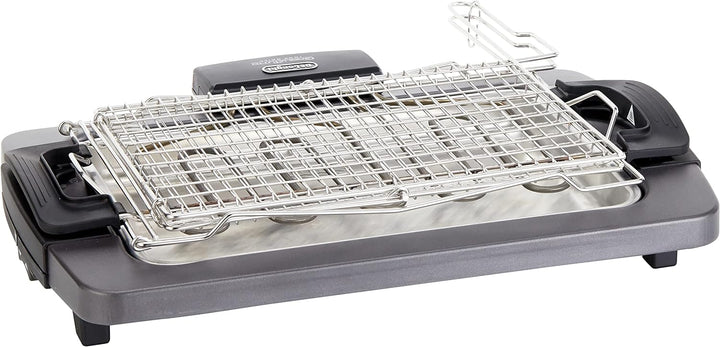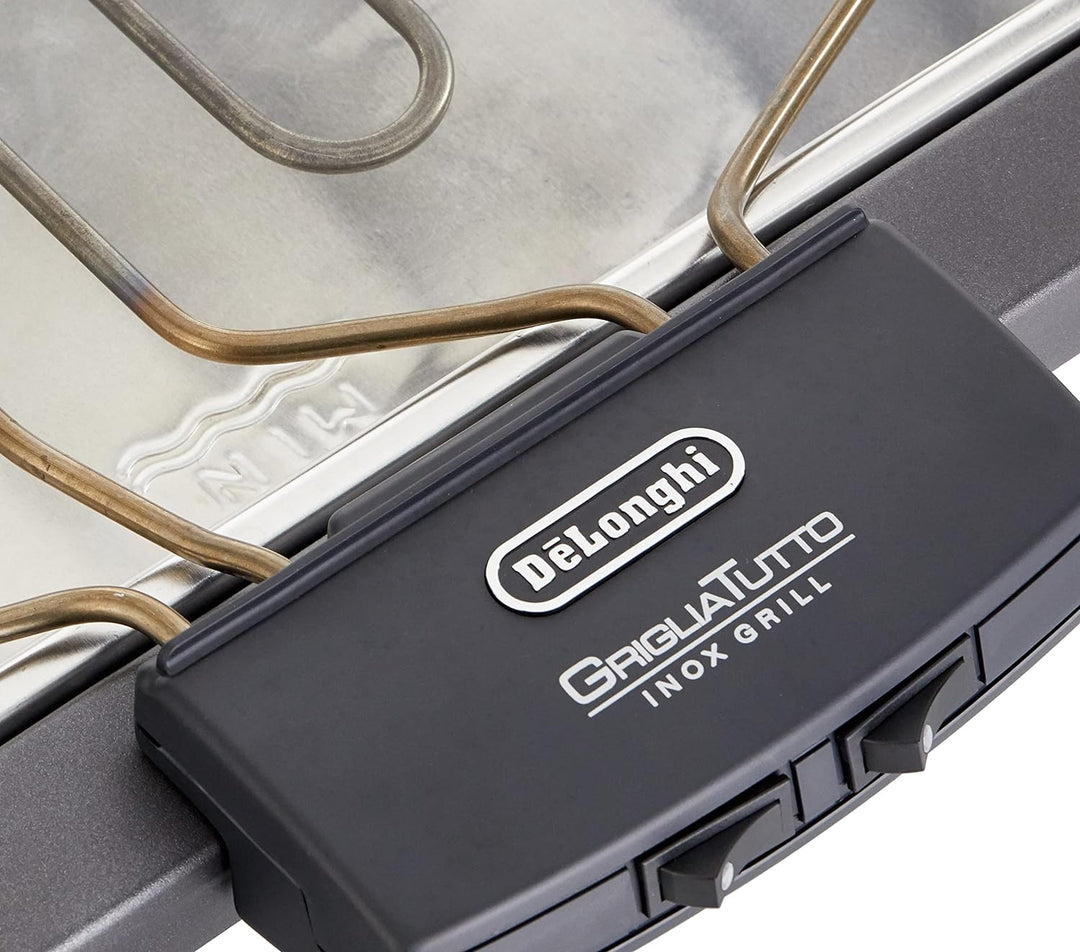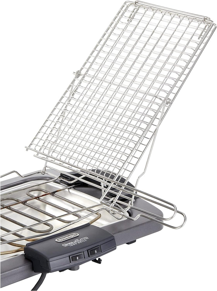 - Drehbarer Doppel Grill, der ermöglicht einfachen Drehen die Speisen, auch die heikelsten, ohne Waschgang