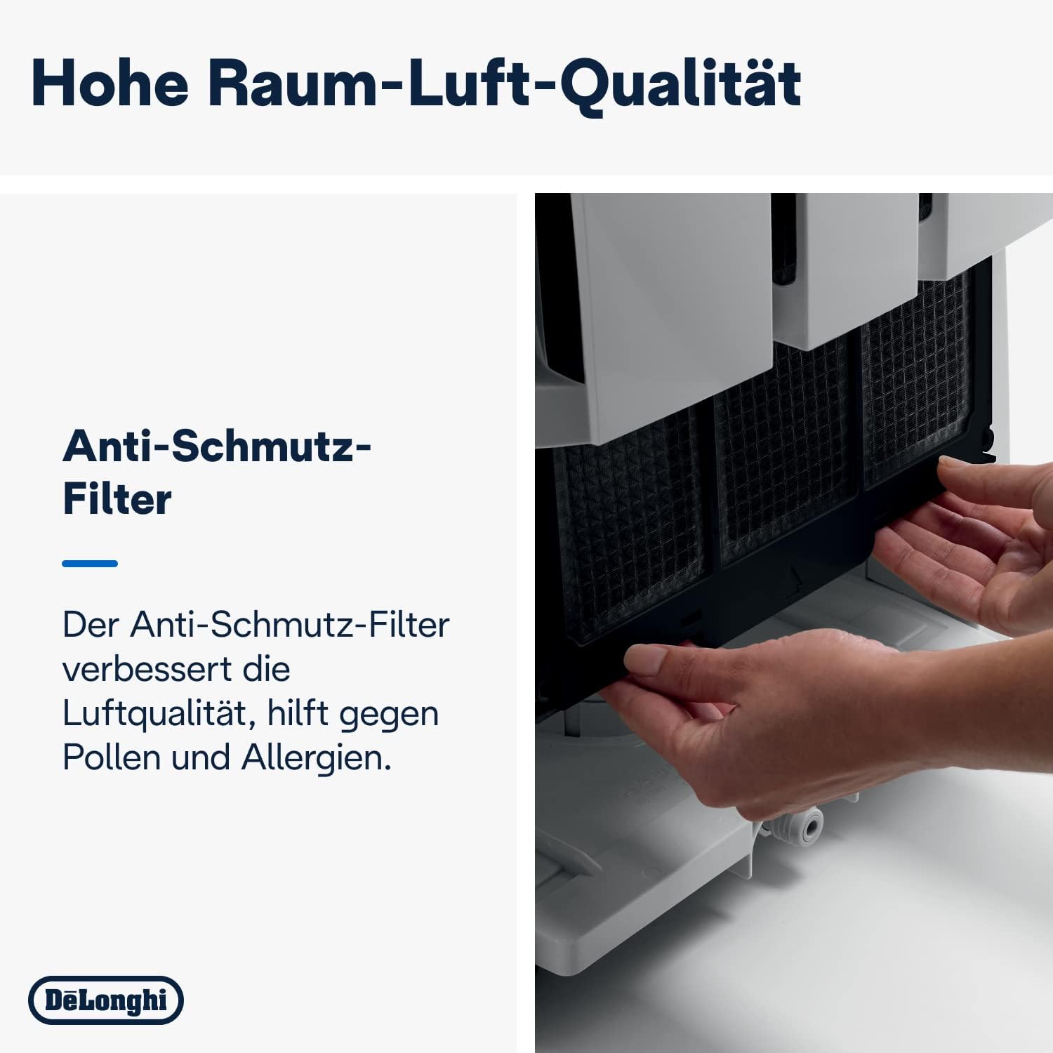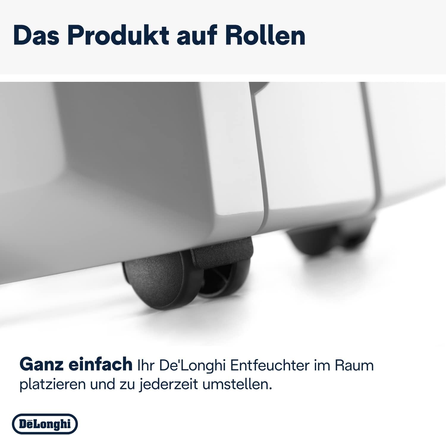 - Lieferumfang: 1 x Luftentfeuchter DD230P in Grau inkl. Abwasserschlauch, grosses LCD Display, vormontierte Transportrollen und integrierte Tragegriffe von De'Longhi