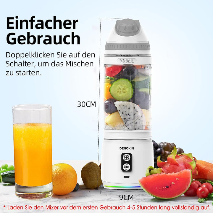 - PERFEKT ZUM VERSCHENKEN: DENOKIN Portable Blender ist ein ideales Geschenk für Ihre Lieben und bietet eine bequeme Ernährung für unterwegs. Sein stilvolles und leichtes Design ist perfekt für Reisende und Fitness-Enthusiasten für die Küche, Reisen,
