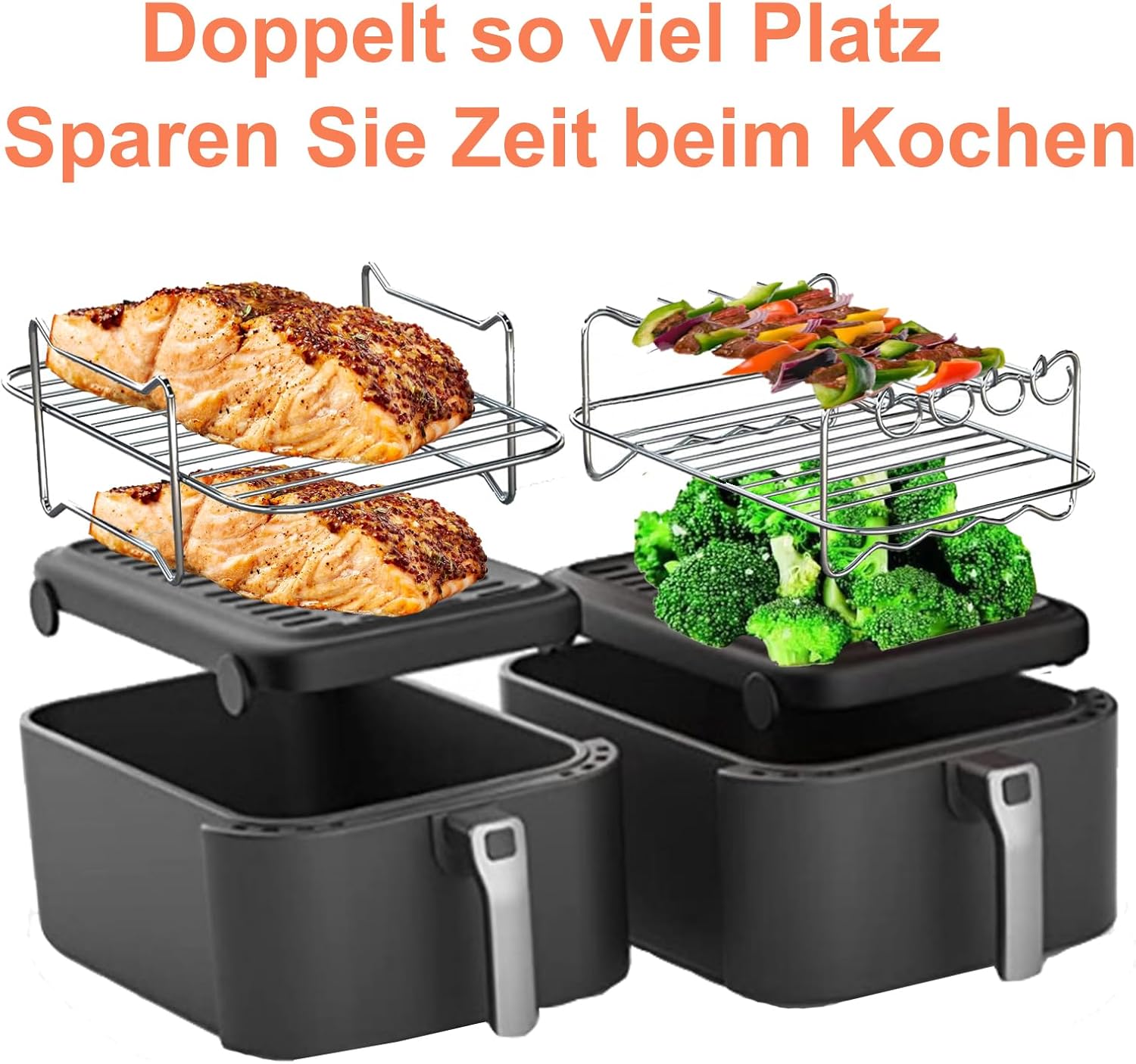 - [Mehrzweck-304 Edelstahl Heissluftfritteuse Grillrost]: Sie können als Doppeldecker verwendet werden und verdoppeln die Kapazität Ihrer Fritteuse, was ein grosser Vorteil ist, wenn Sie für eine grosse Familie kochen oder Gäste bewirten. Gegenstände